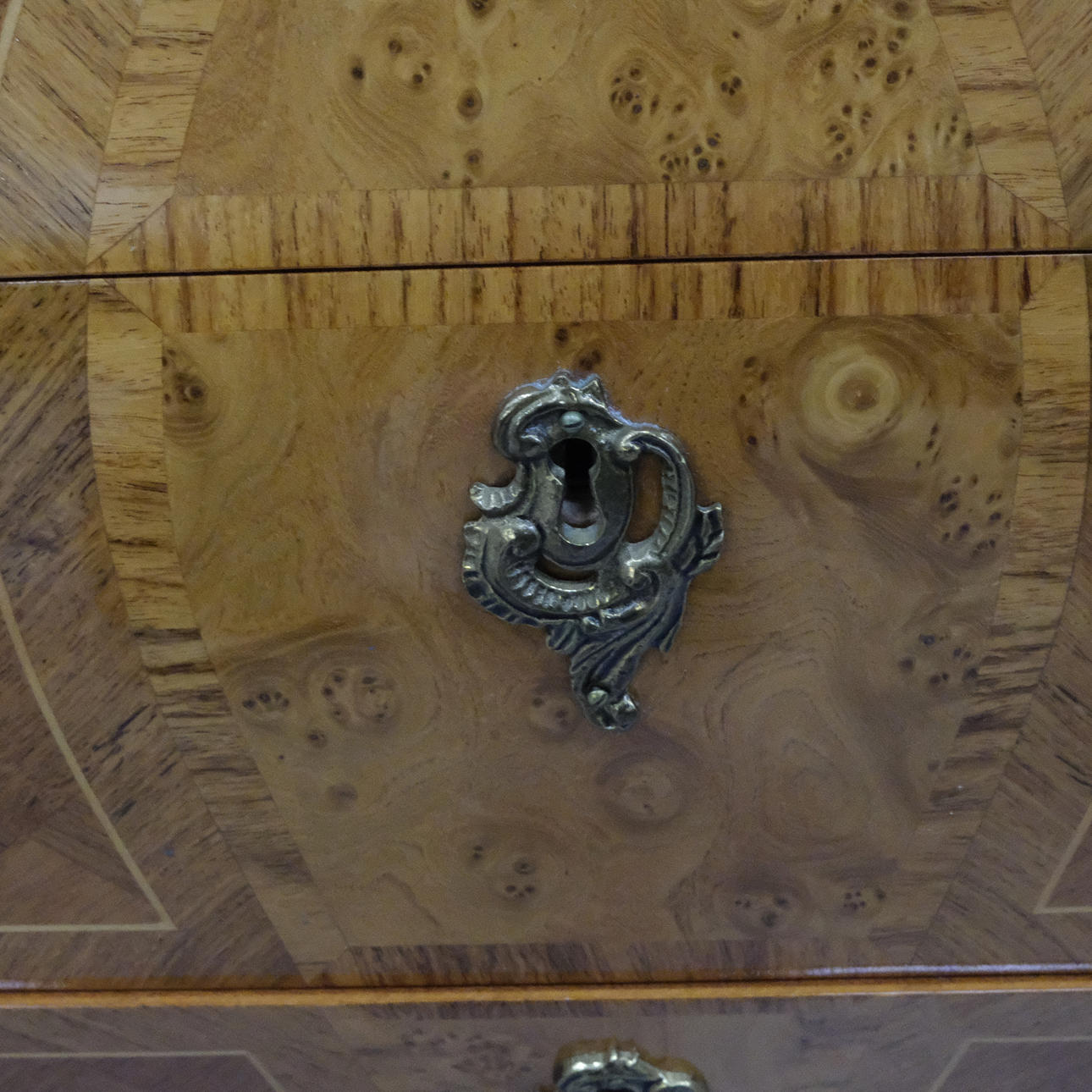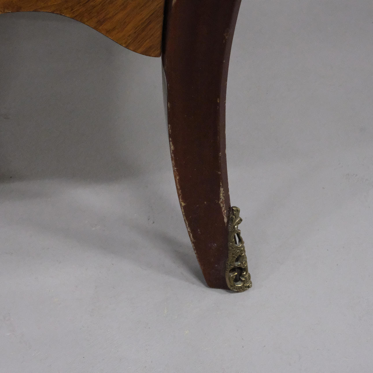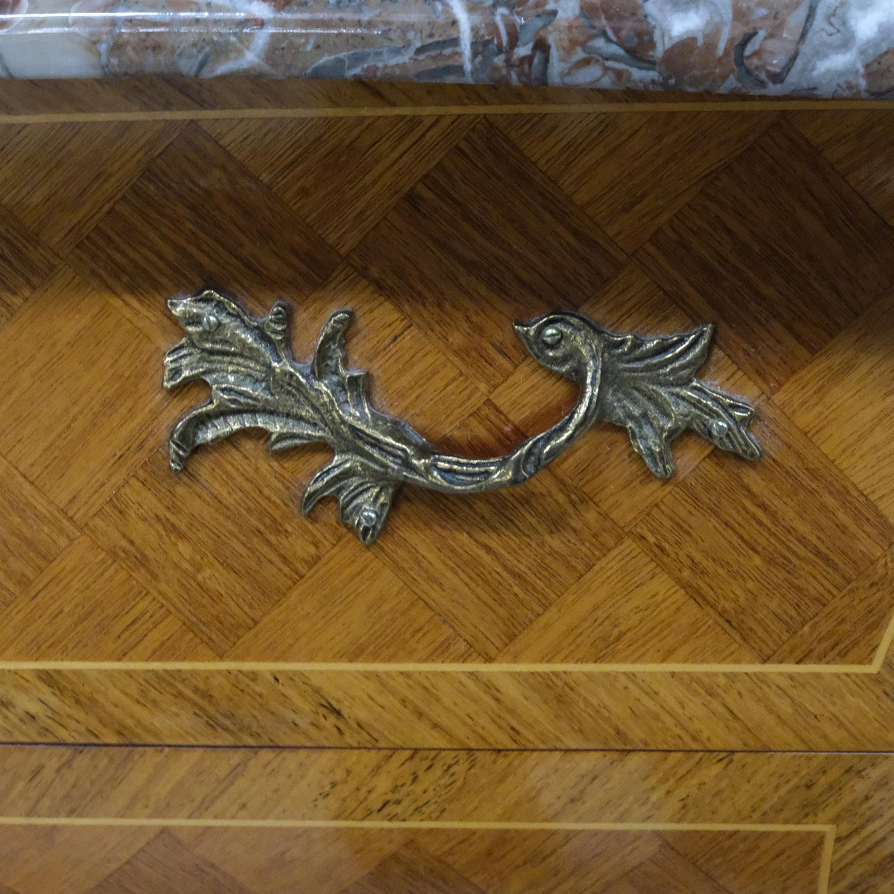Chest of drawers with loose stone slab. Three boxes. Gilded fittings and intarsia decor. Height: approx. 78 cm. Dimensions of the disc: approx. 88 x 41 cm.