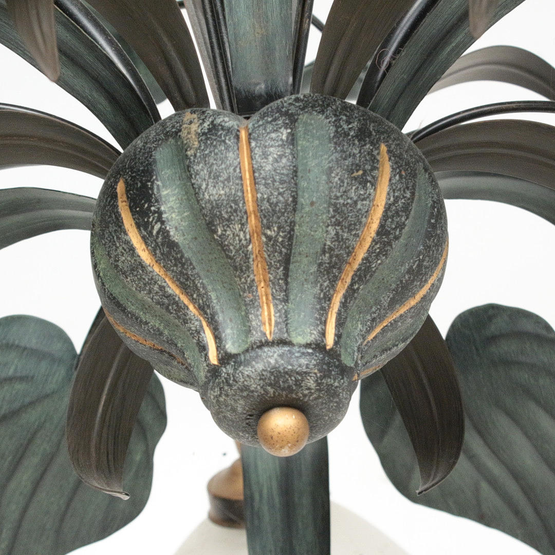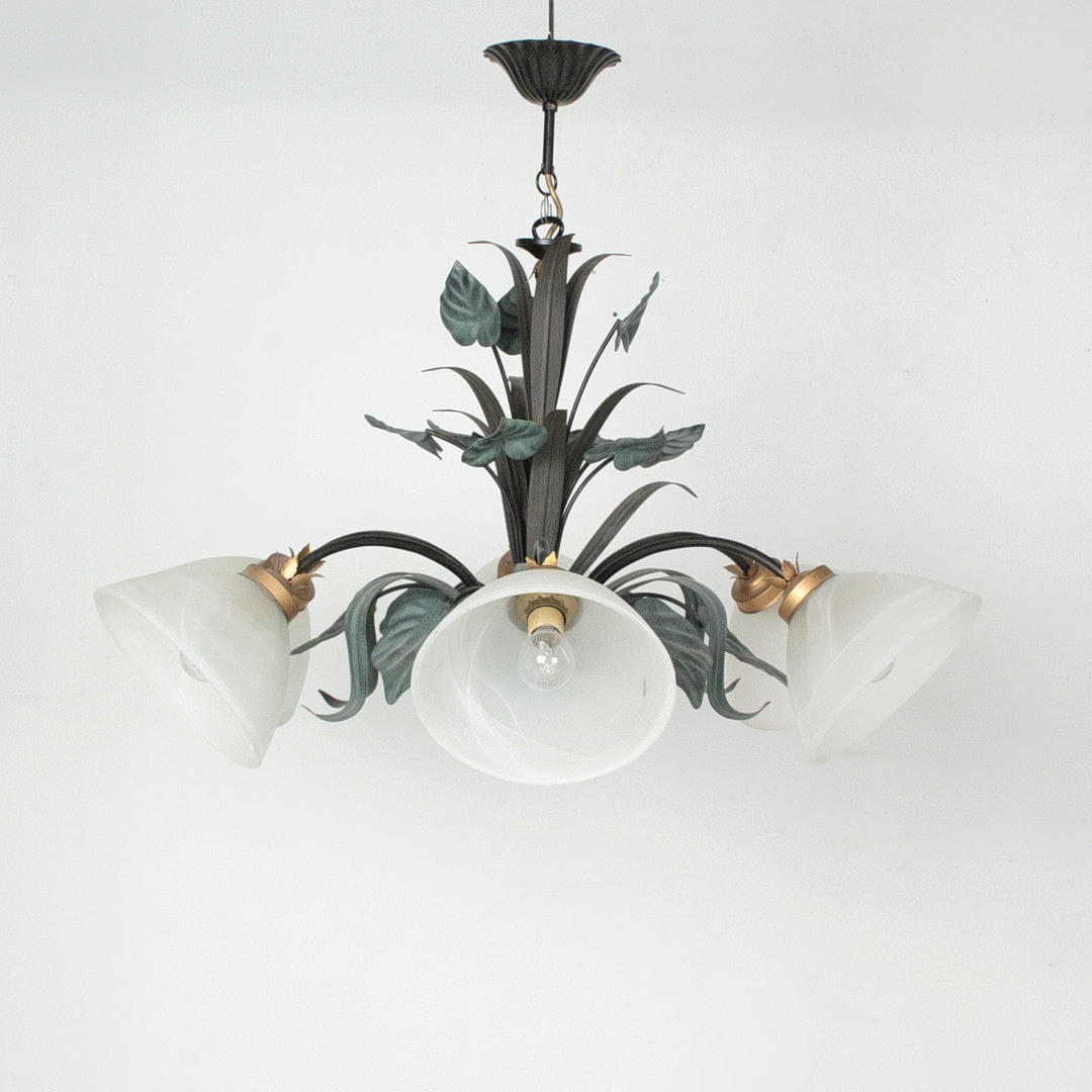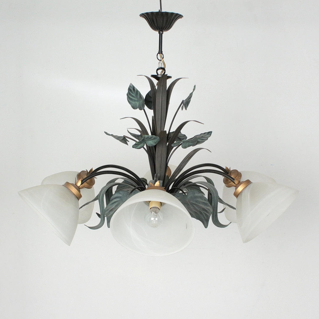 Floral ceiling light, metal, 6-lamp, glass shade, dimensions approx.: H. 60 cm, Ø 80 cm.