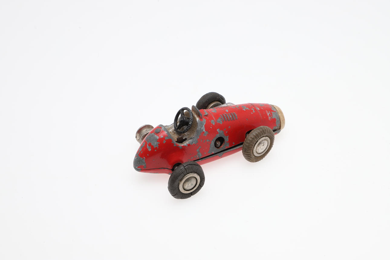 CLOCKWORK CAR & ANOTHER CLOCKWORK TOY, & SCHUCO RACING CAR.
