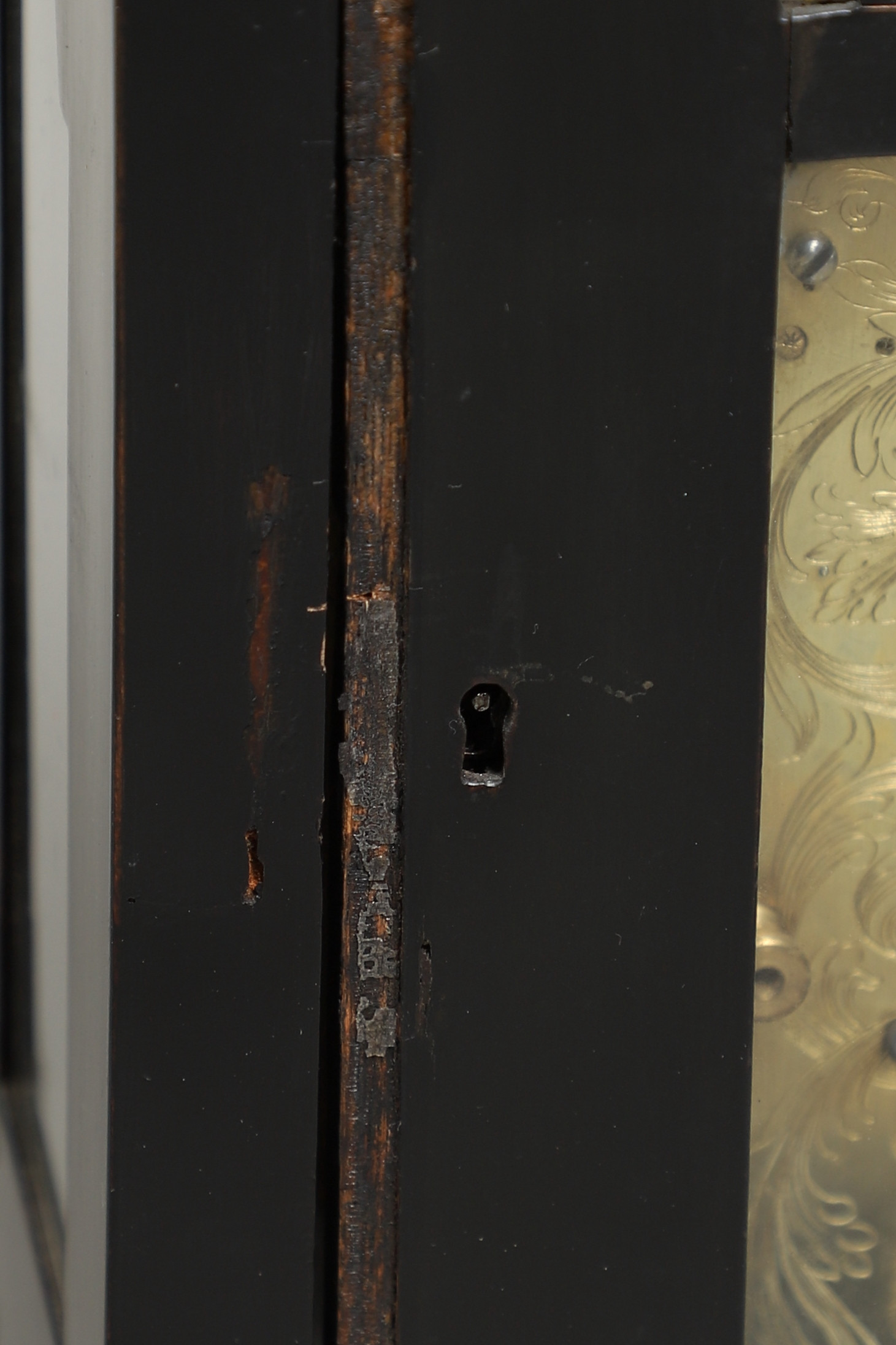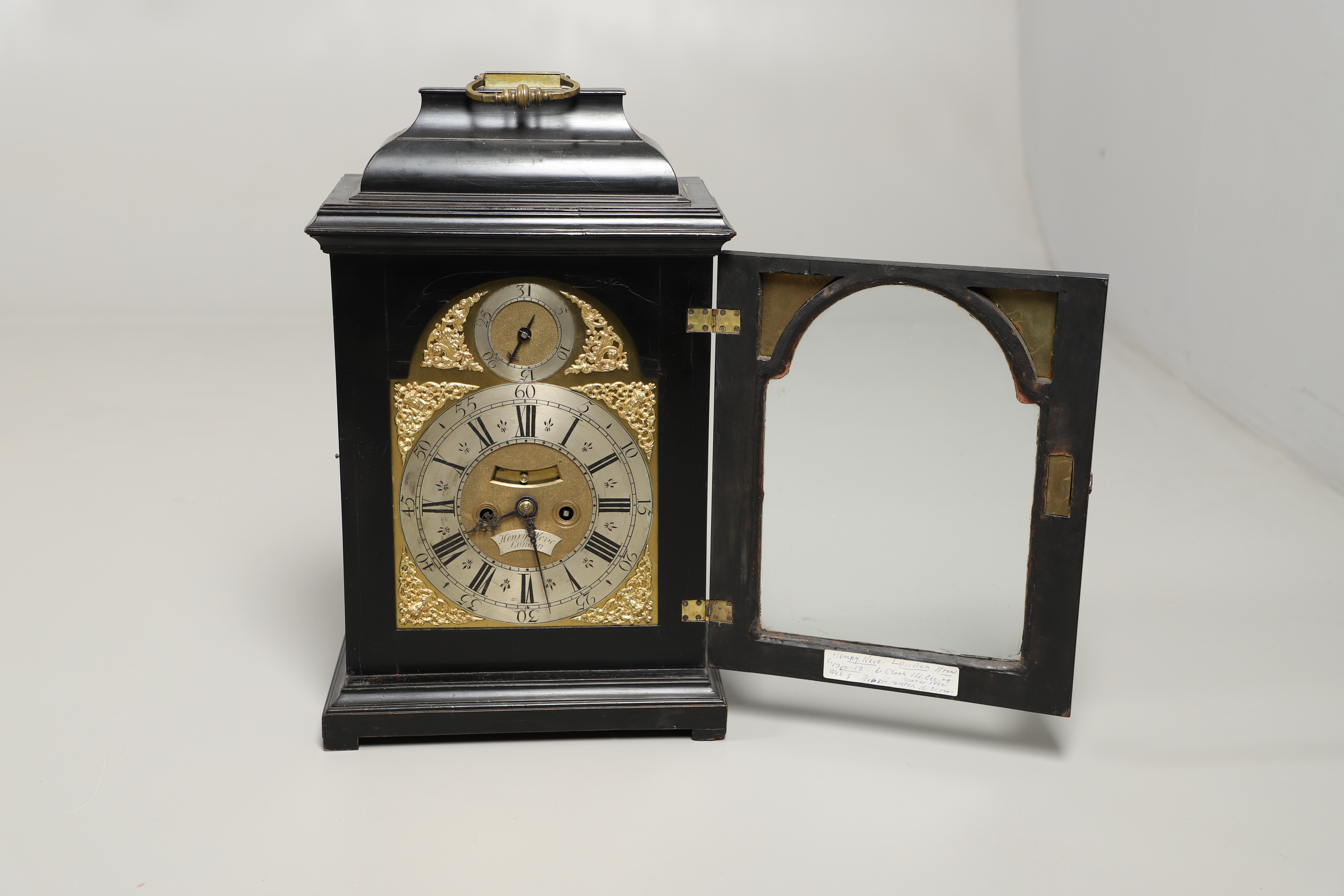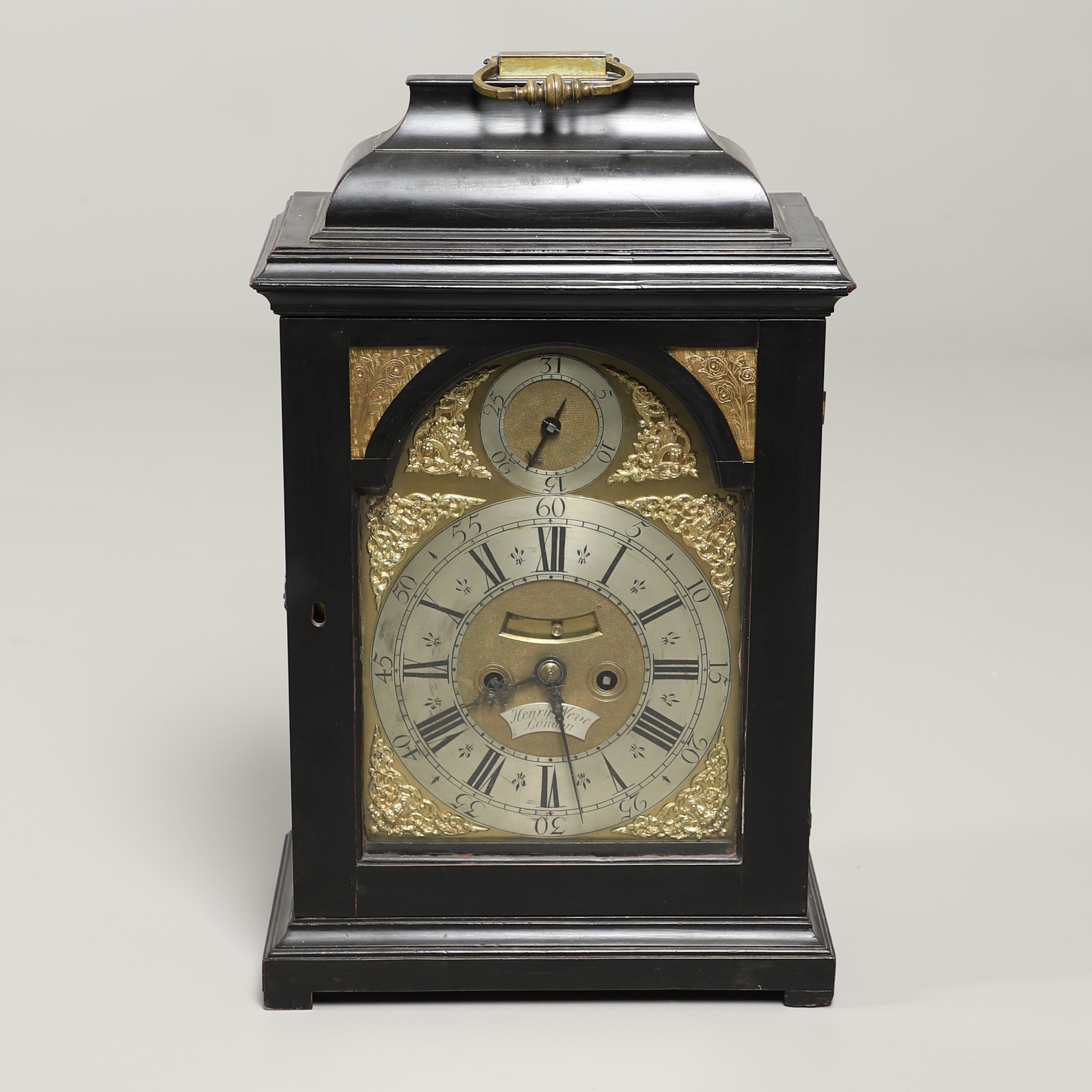 1334. 2738556. AN EARLY-MID 18TH CENTURY EBONISED BRACKET CLOCK.