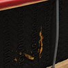 Normal wear and tear, minor scratches and impact marks. The lower seat with damage.