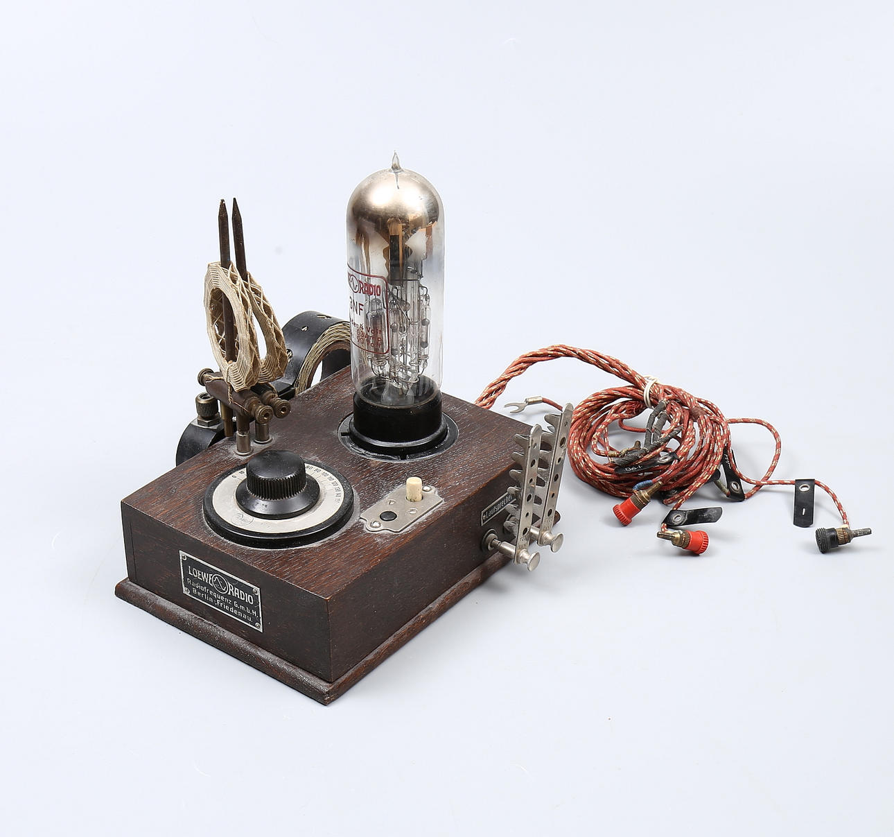 Badge marked "Loewe Radio, Berlin". Length approx. 18, width approx. 13 cm.