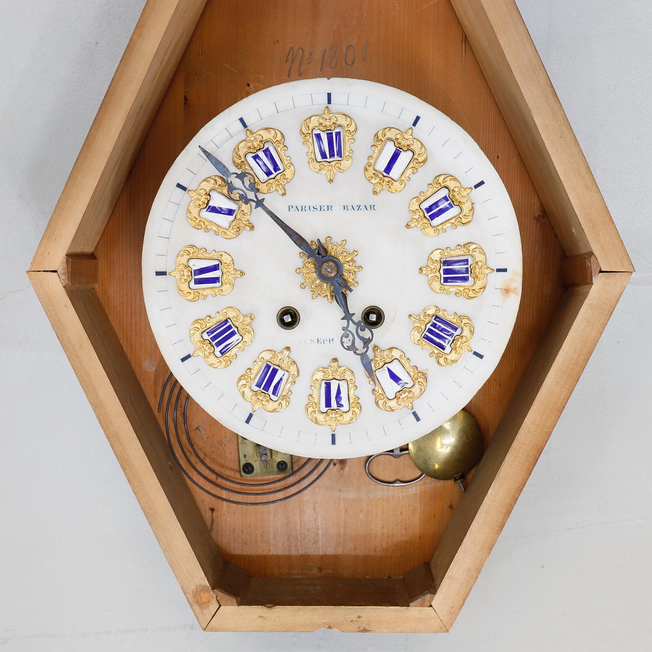 Dial with Roman numerals in enamel, base of the dial in White marble, richly decorated. Height 64 cm.
