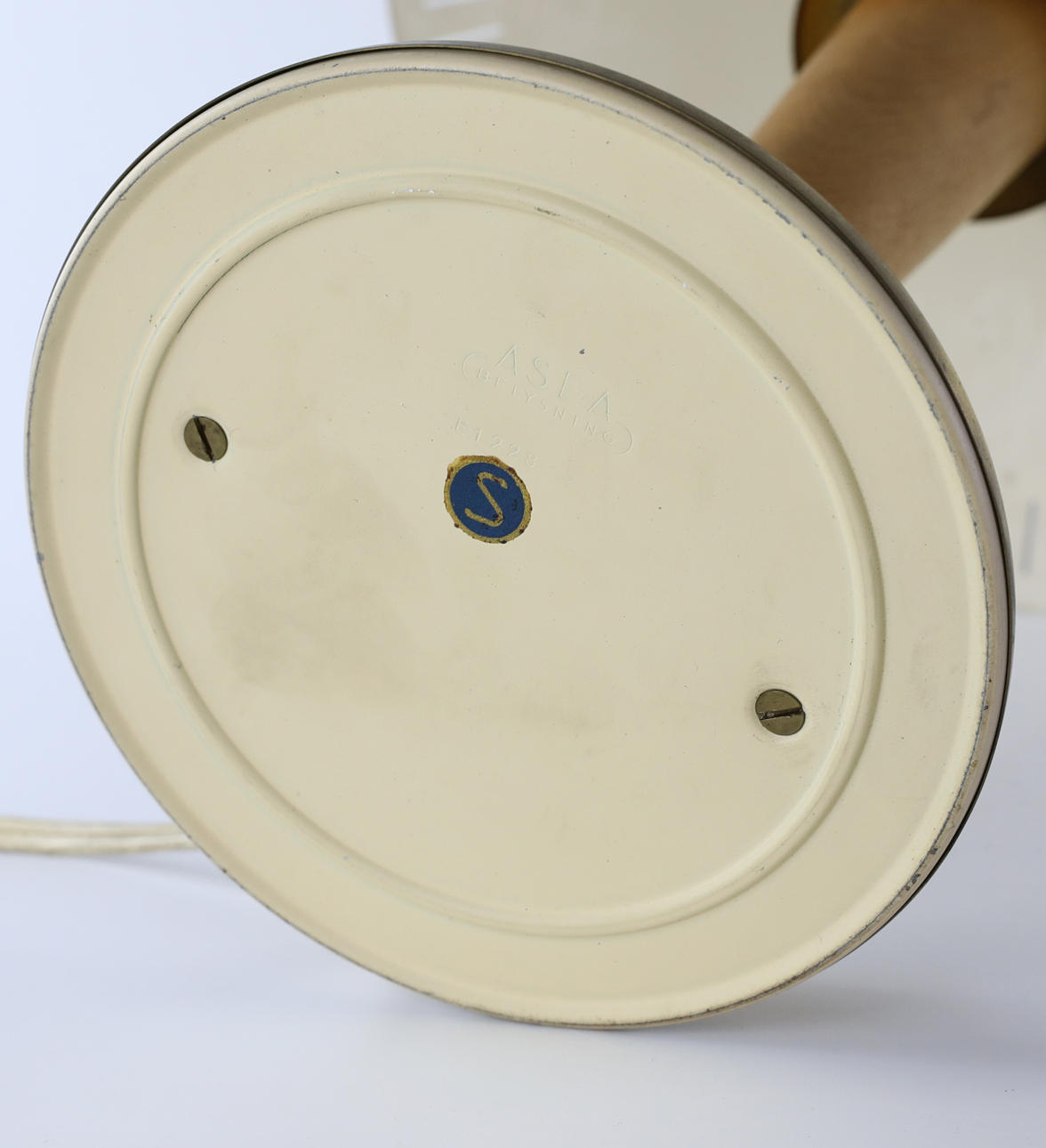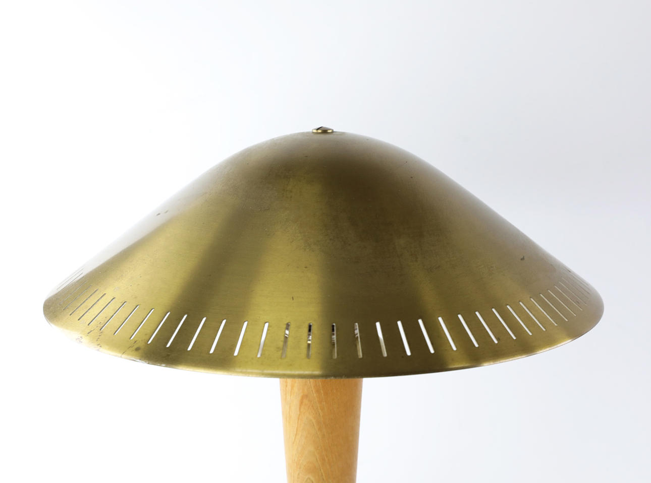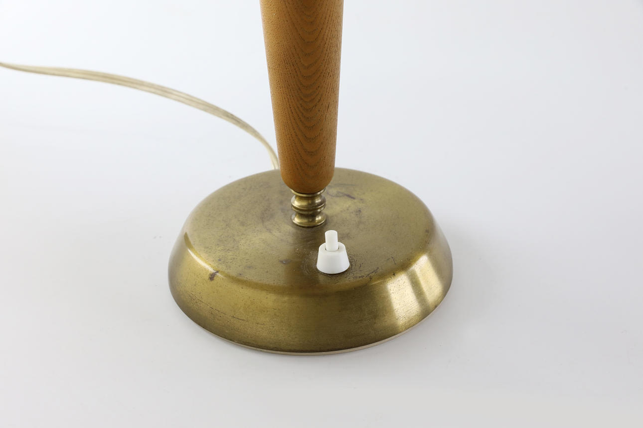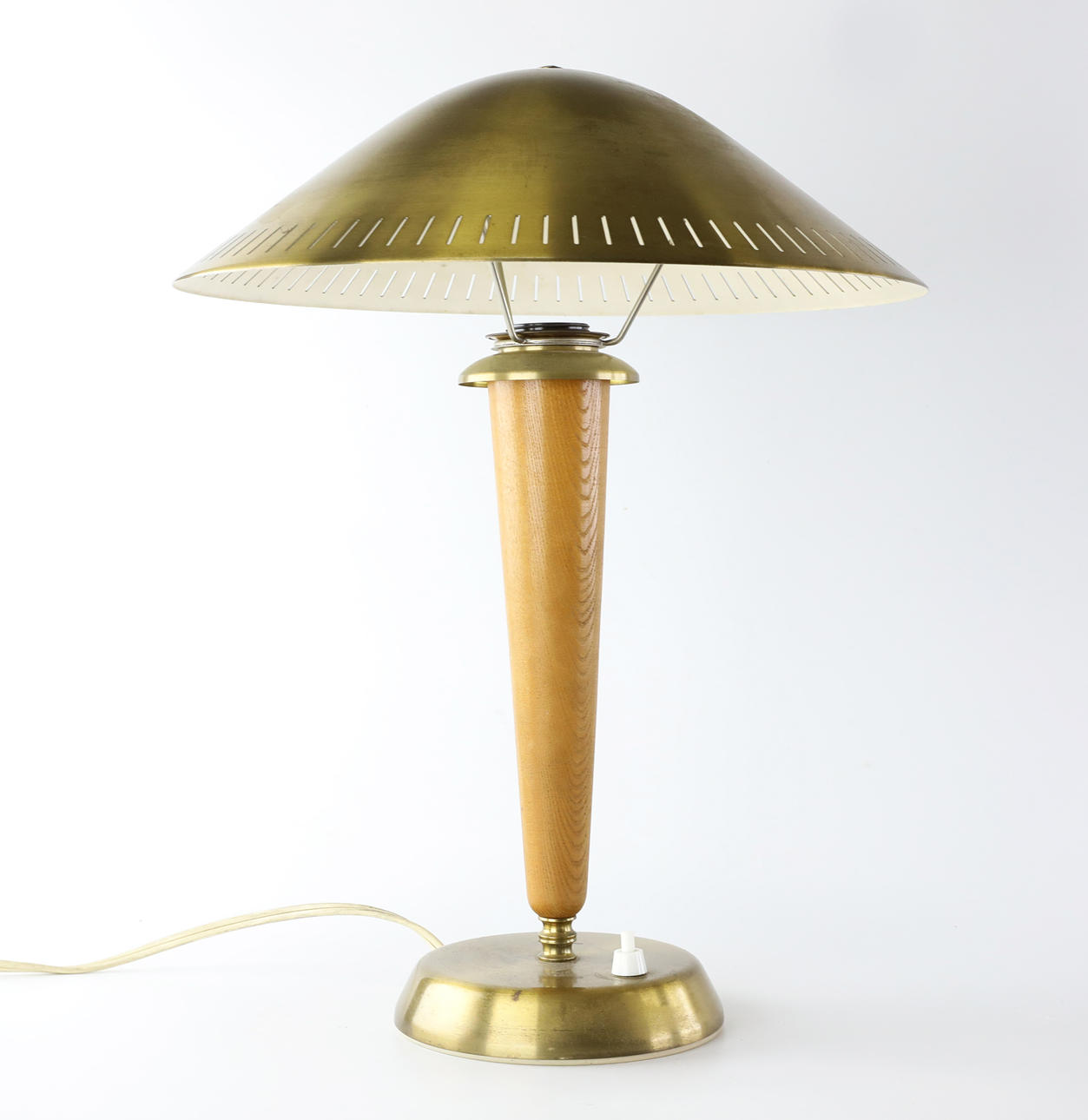 Brass and wood, for a light source. Height approx. 43 cm Diameter 33 cm.