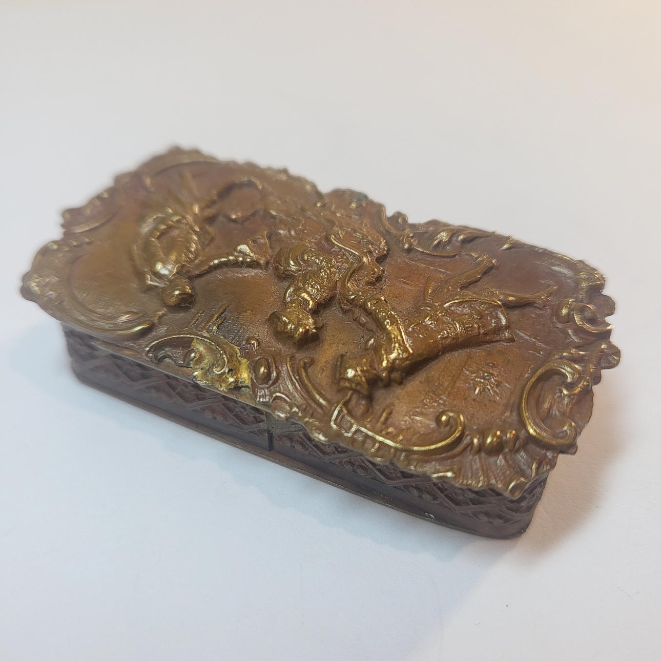 SNUFF BOX IN EMBOSSED BRASS. FIRST THIRD XX CENTURY.