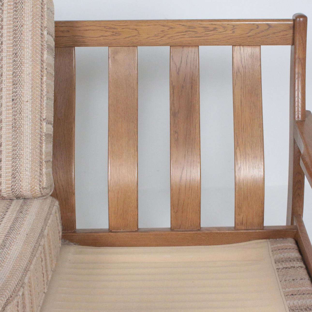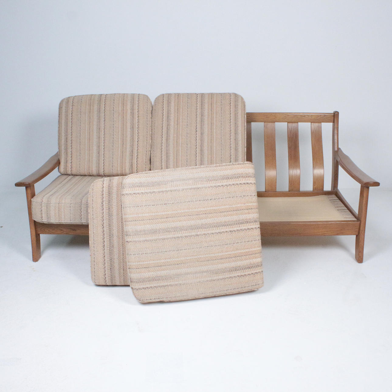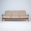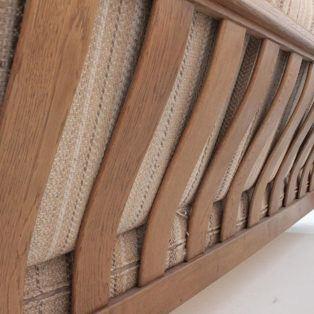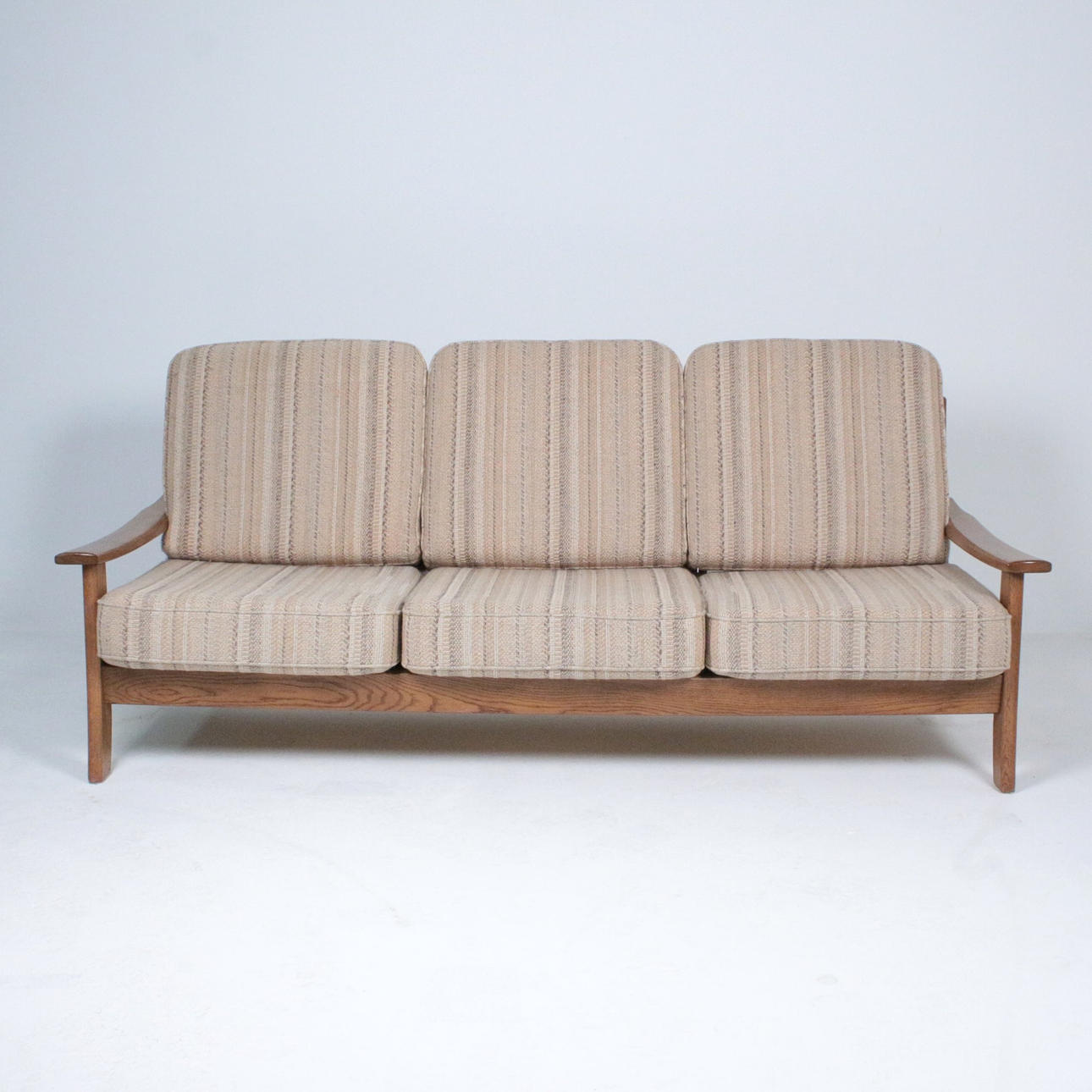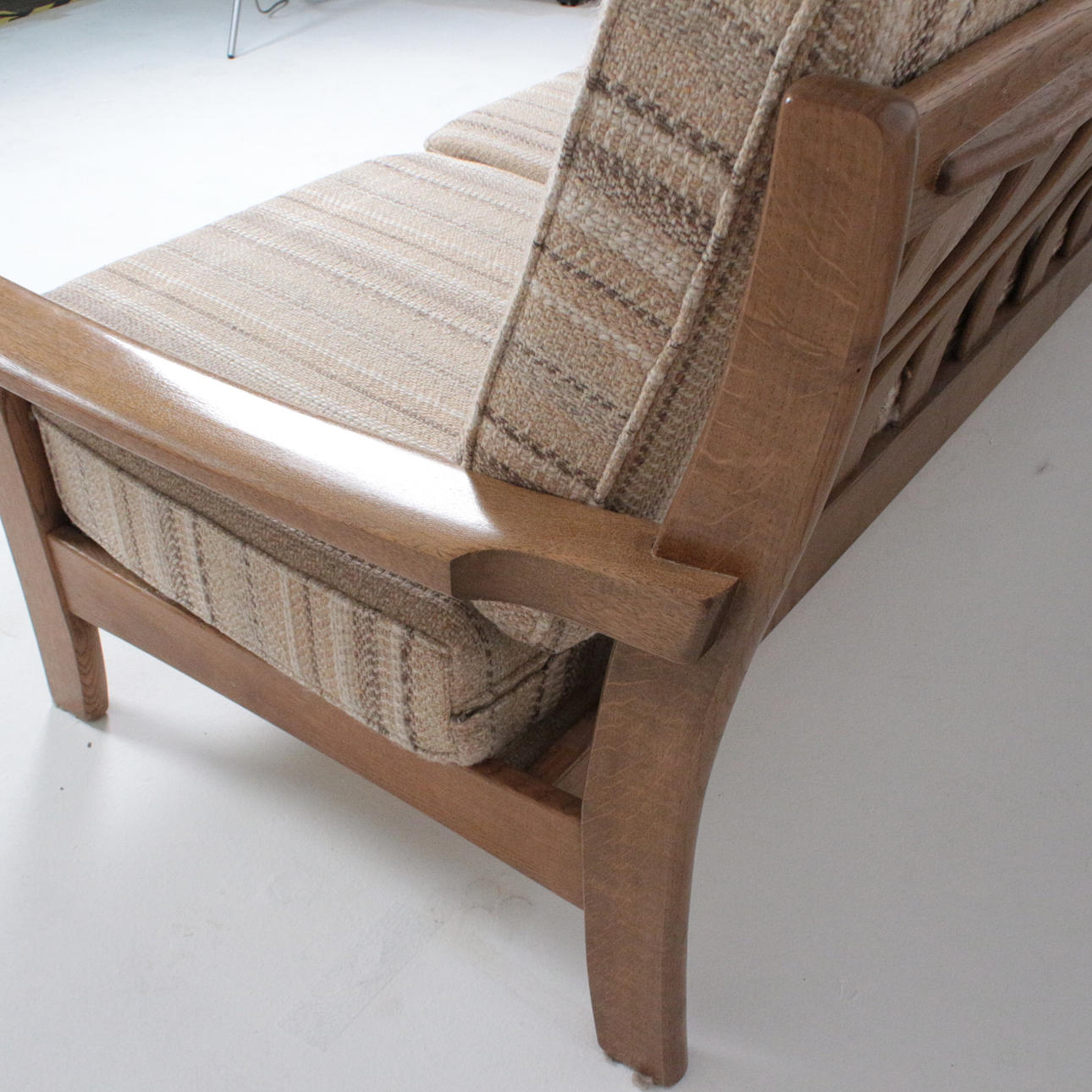 Couch / three-seater, 'Brutalist', clear lacquered oak wood, 1960s, dimensions approx.: H. 92 cm, L. 208 cm, D. 88 cm.