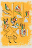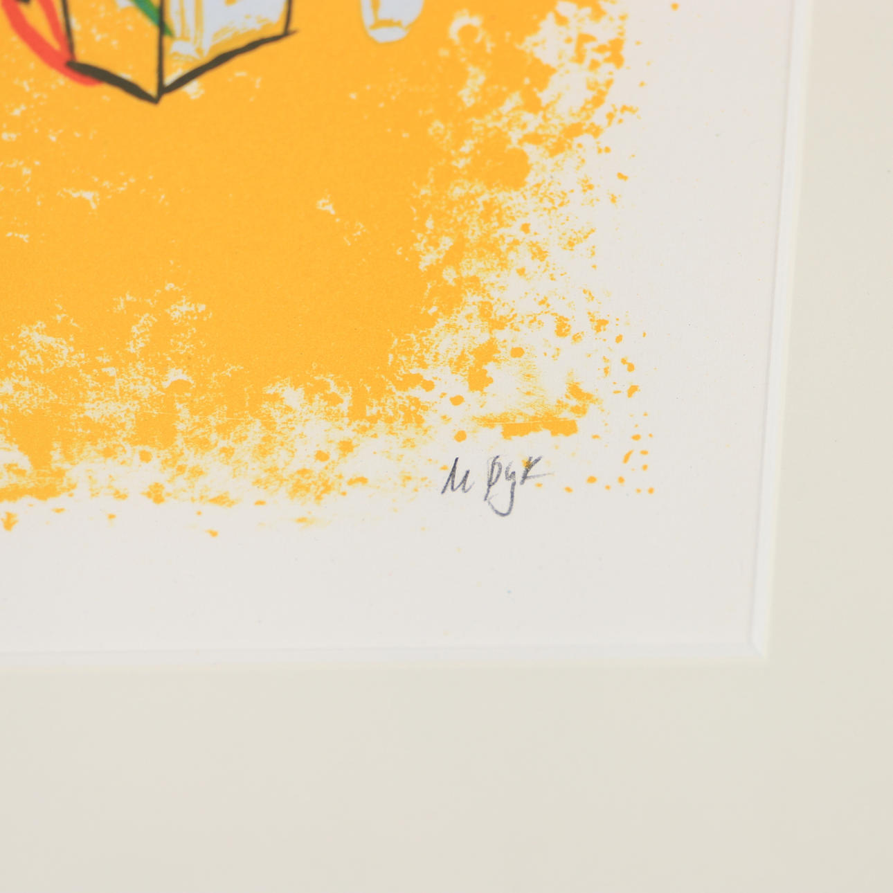MADELEINE PYK. Composition with cats, color lithograph, signed M. Pyk.