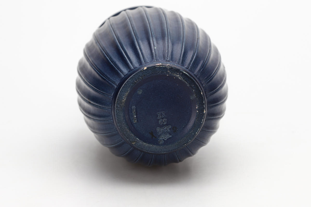 Height approx. 22 cm, ribbed decoration, blue glaze.