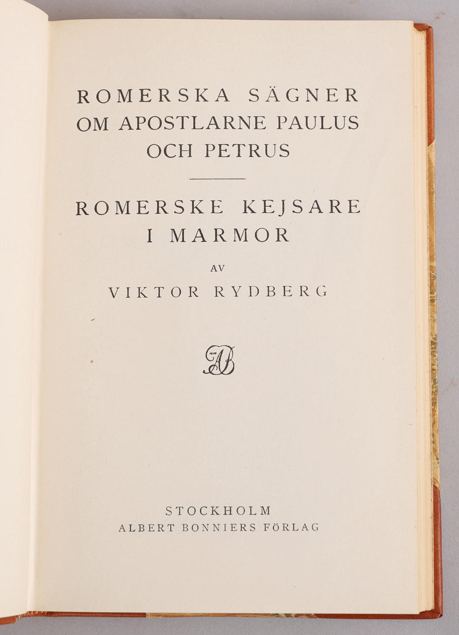 Viktor Rydberg, Skrifter, 8 volumes, Albert Bonniers Förlag, Stockholm, 1928-29 In the publisher's half-French binding with marbled cover and gilt top section.