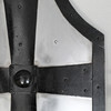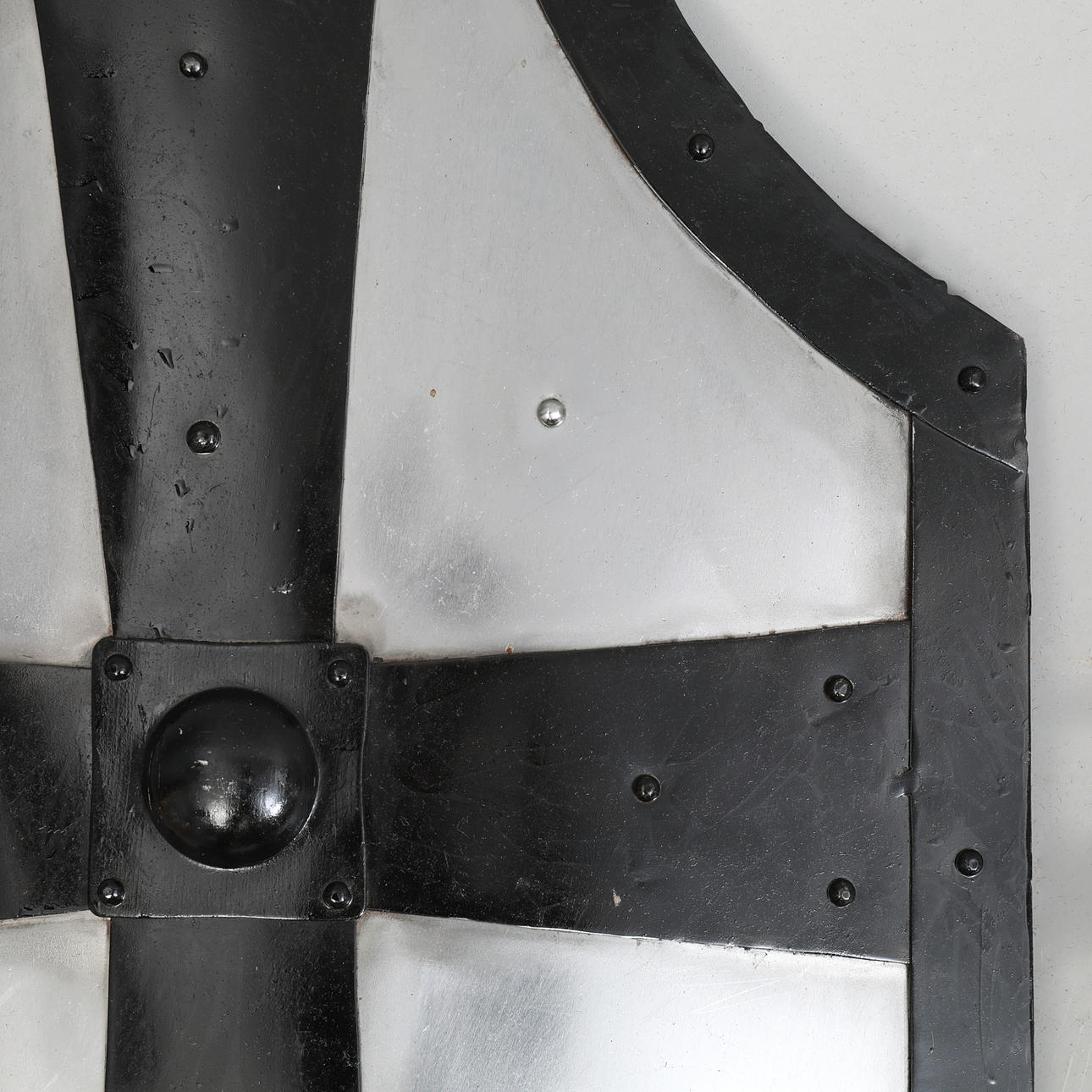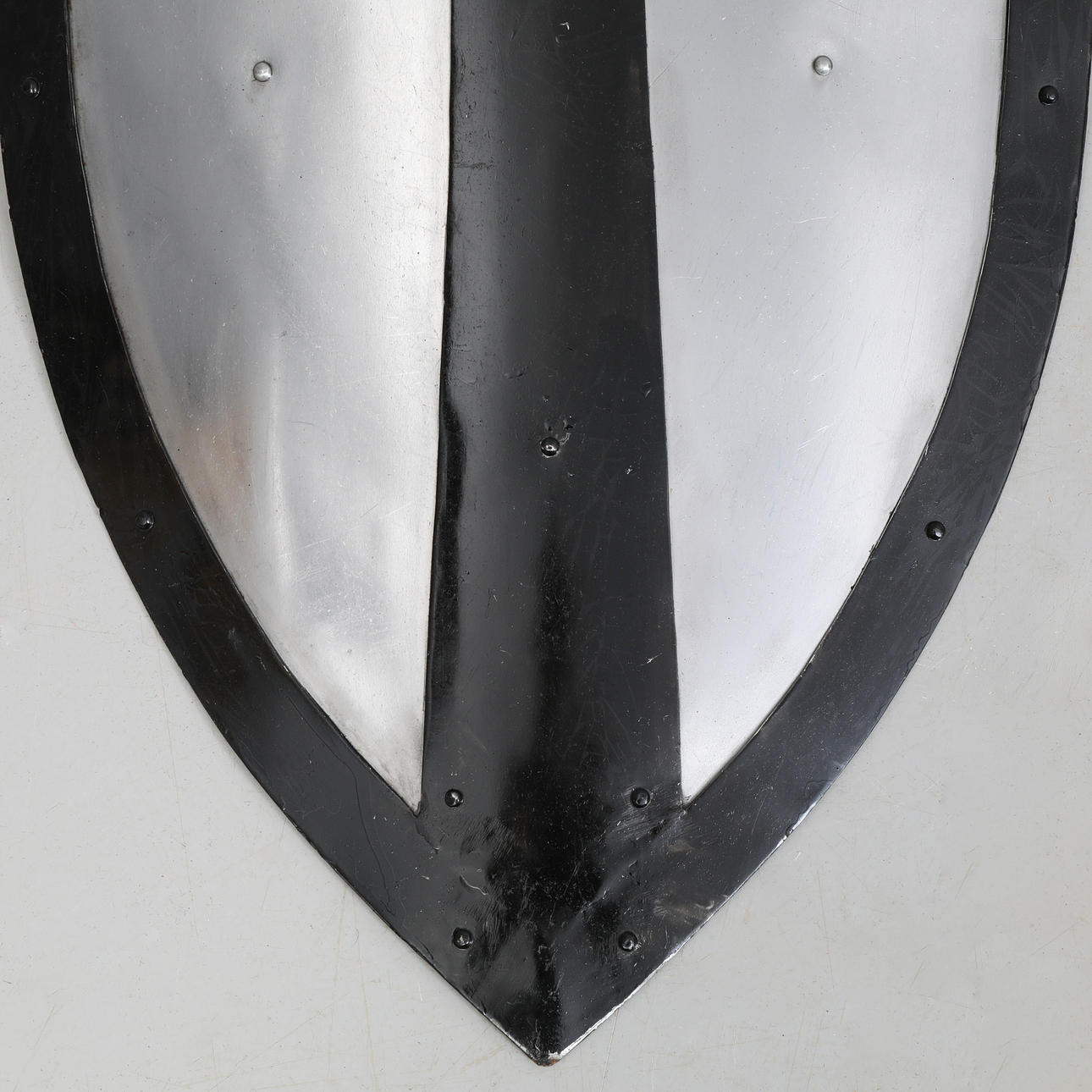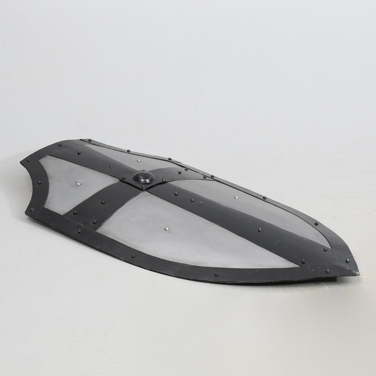 Handmade replica of a medieval gothic shield. Height approx. 81 cm, width approx. 44 cm.