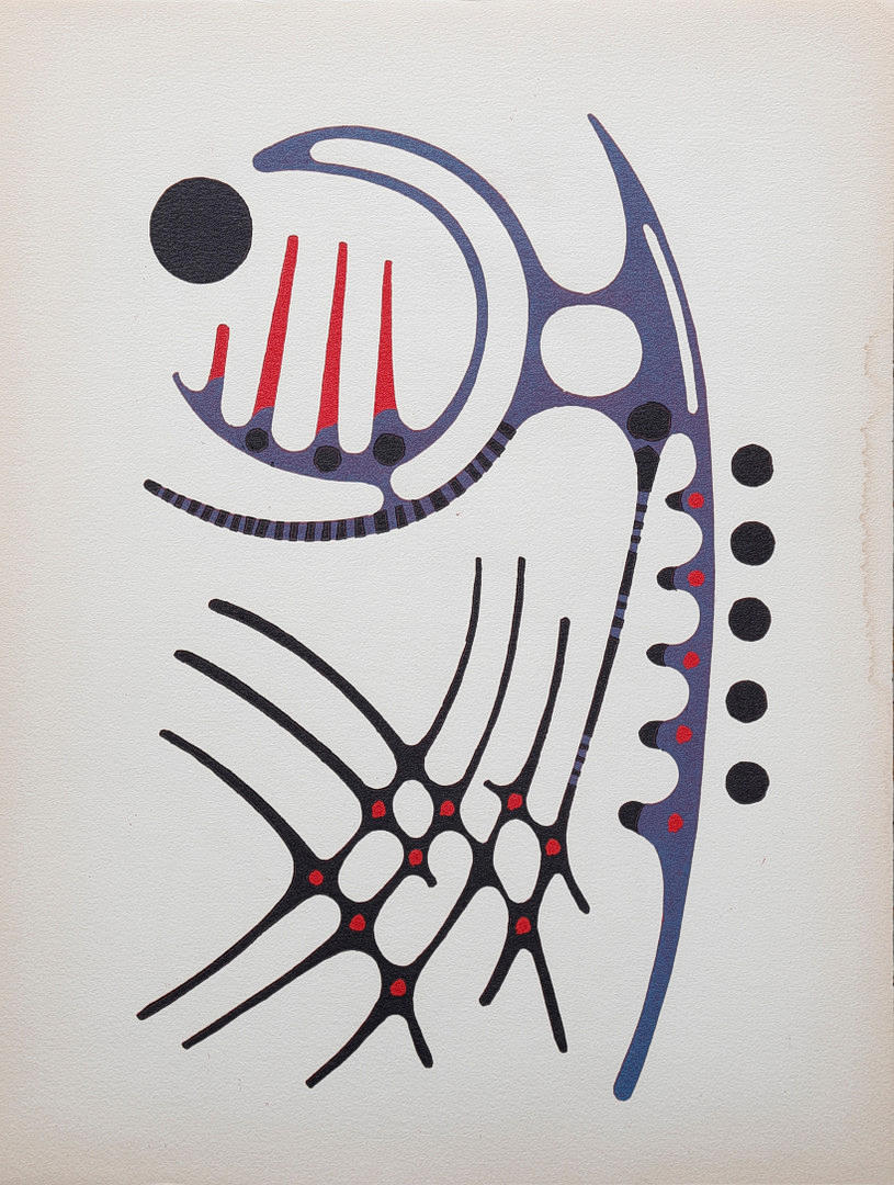 Included in publishing portfolio, illustrating a poem by Alain Arias-Misson. Copy number 100.
