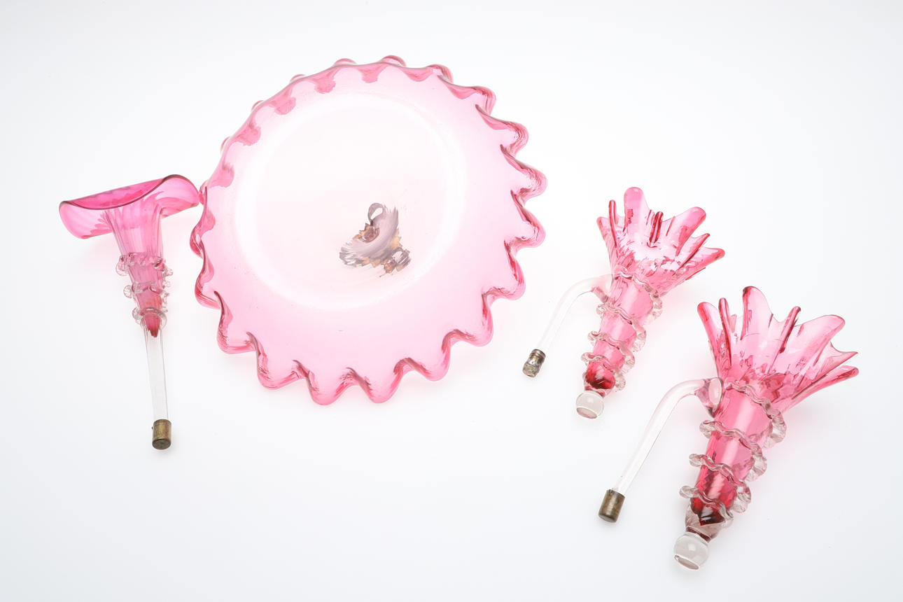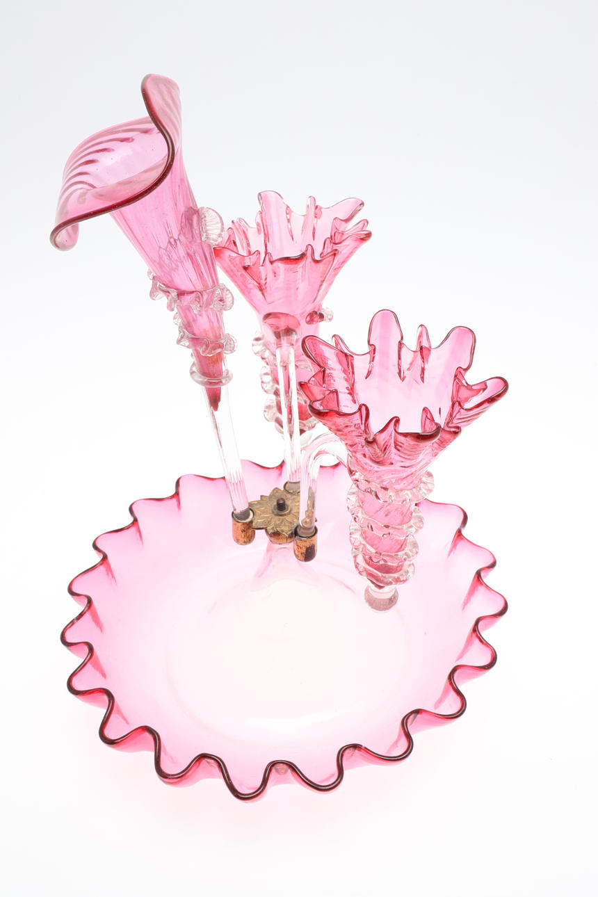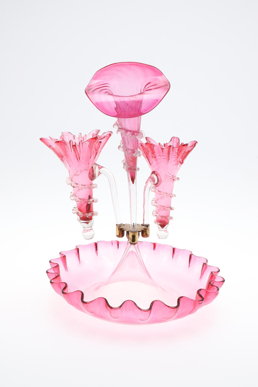CRANBERRY GLASS EPERGNE.