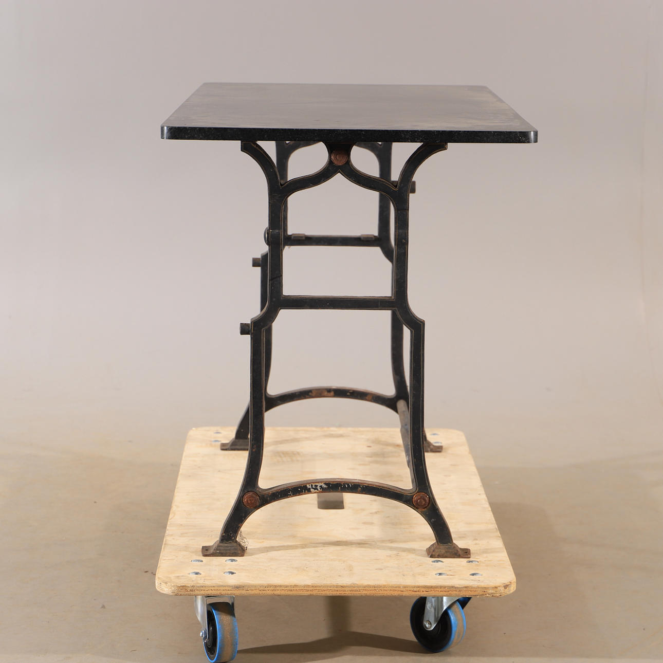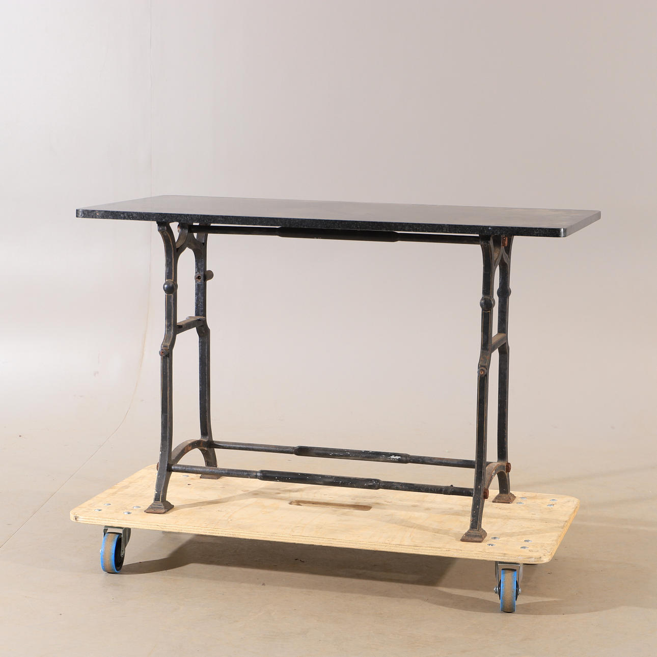 GARDEN TABLE, cast iron with marble top.