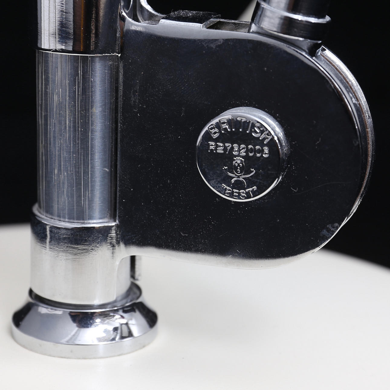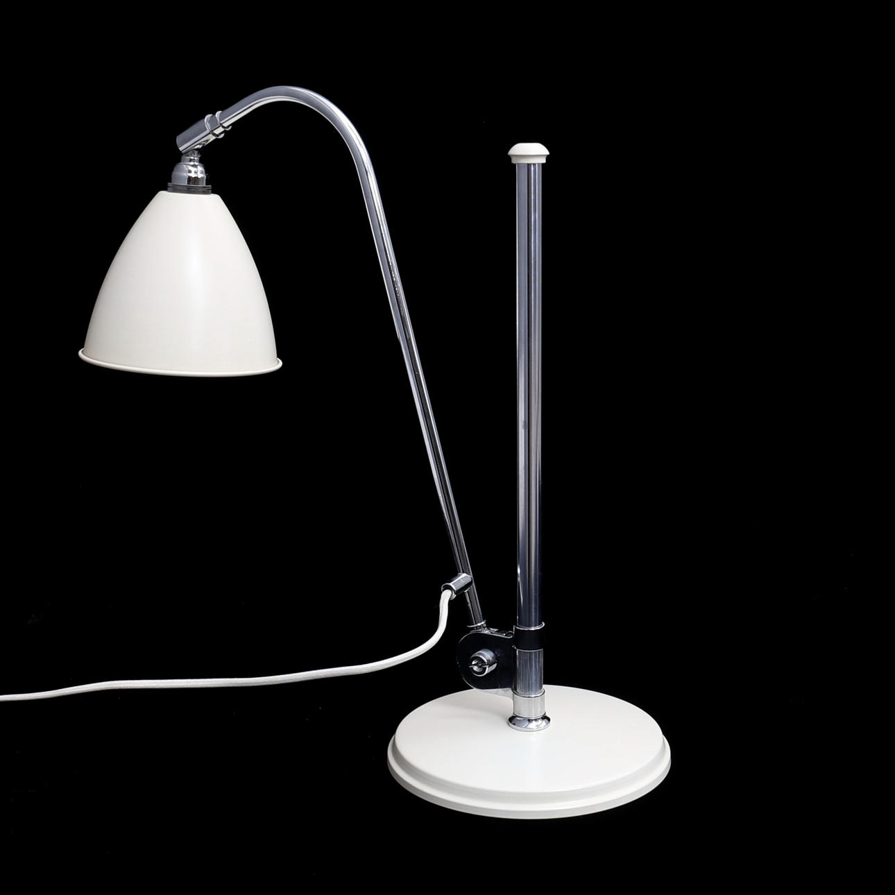 Chrome and white lacquered screen and foot. Adjustable height. Height 52-82 cm.