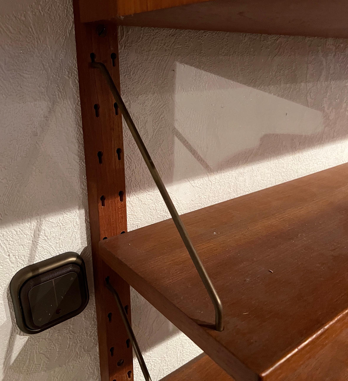 6 shelves, width approx. 100 cm, depth approx. 23.5cm.