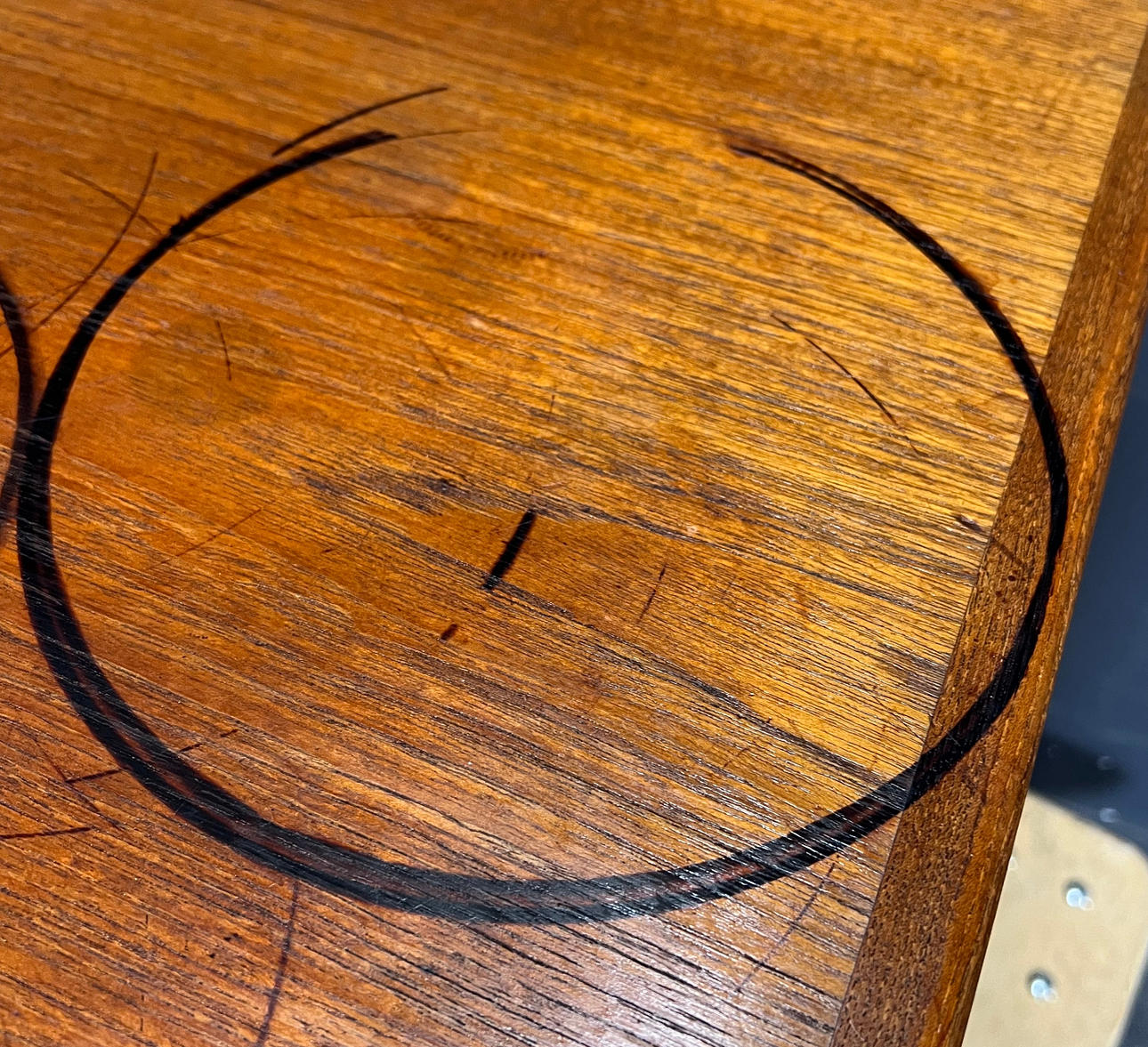 Strong signs of wear on the tabletop.