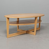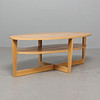Oval table in oak veneer on connected legs. Dimensions: length 140, width 66, height 42 cm.