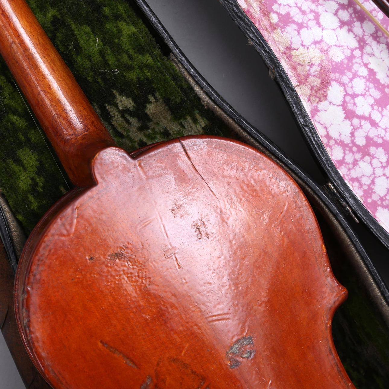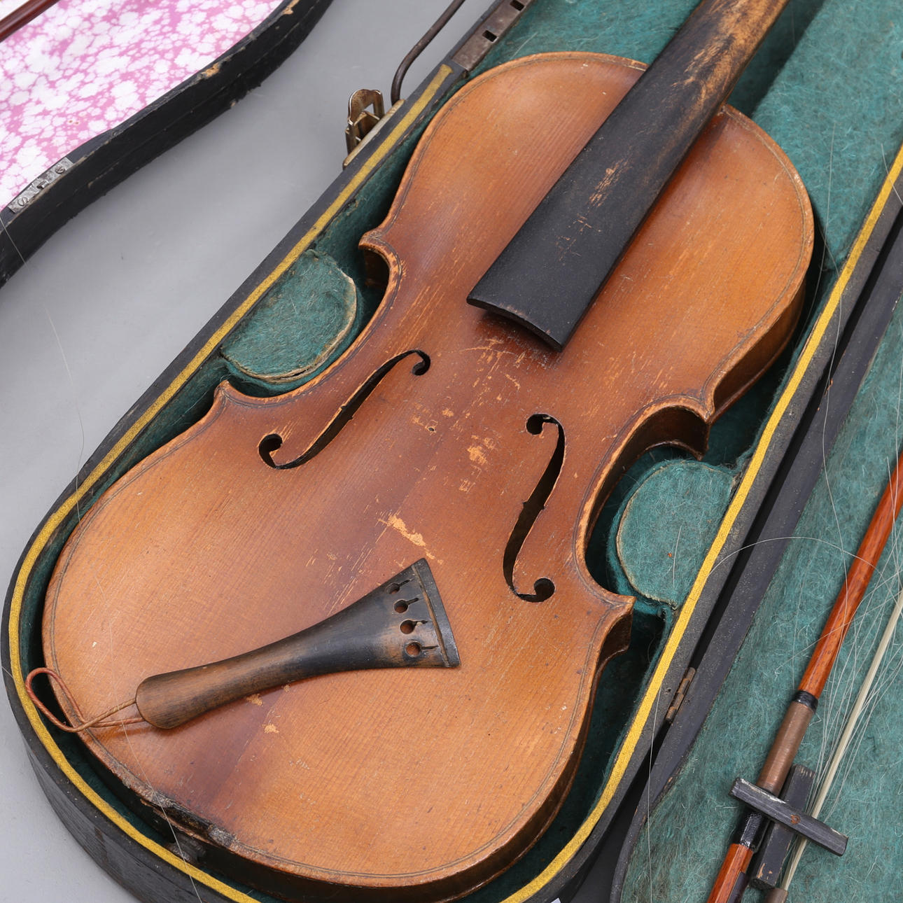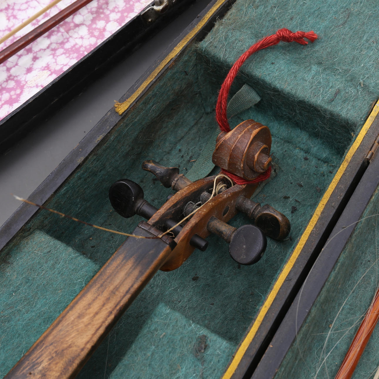 Length 59 cm. 3 strings length 70-73 cm. In a case, one of which is wooden.