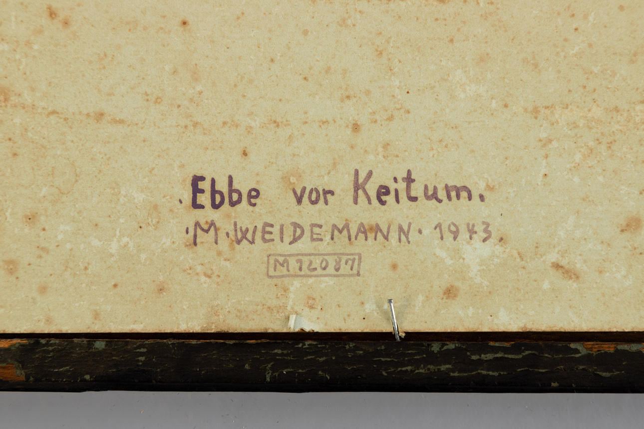 Magnus Weidemann (1880-1966), Ebbe vor Keitum, watercolor on cardboard, 1943, monogrammed and dated lower right, signed and dated again as well as titled on the reverse and with the work number "M12087", approx. 21.5 x 37.4 cm, with frame approx. 10" x 16"