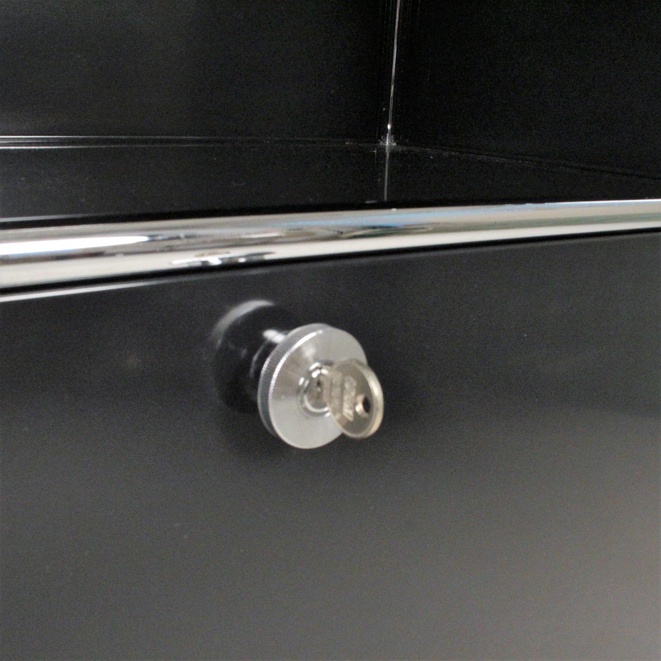 Material: Sheet steel painted anthracite black, chrome-plated steel Dimensions: H: 145 cm, W: 78 cm, D: 38 cm.