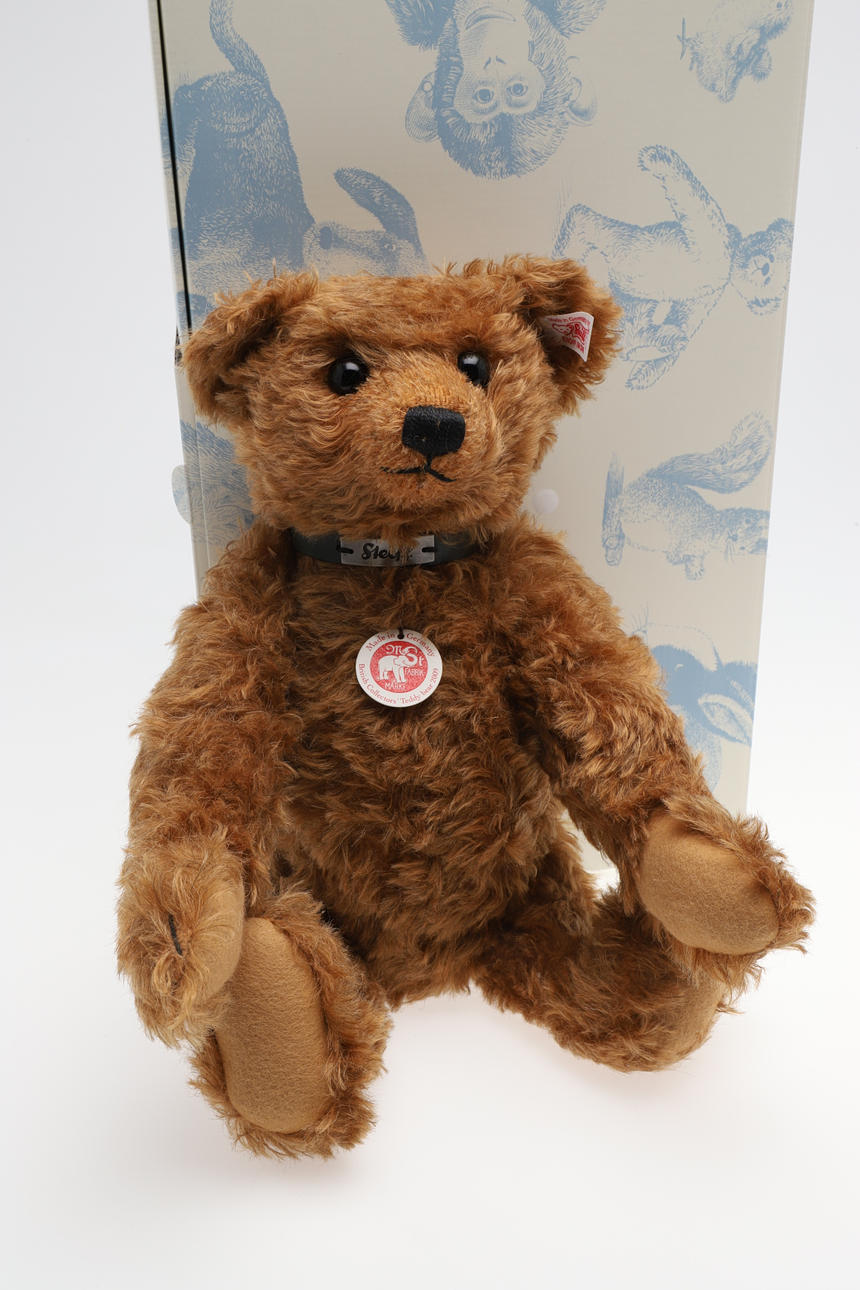 Including a modern boxed Collectors Teddy Bear 2009, no 527 of 3000 made and with it's certificate, box and outer box (36cms high). Also with a boxed Teddy Bear Replica 1925, no 1032 of 1925 made, with it's box, certificate and outer box (33cms high). (2).
