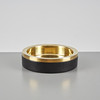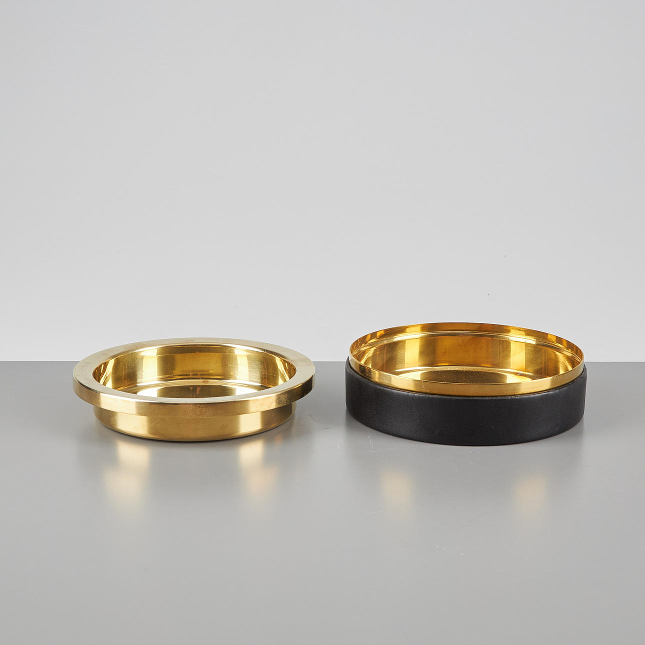 Brass, lower part covered with black leather. Diameter 16.8 cm.