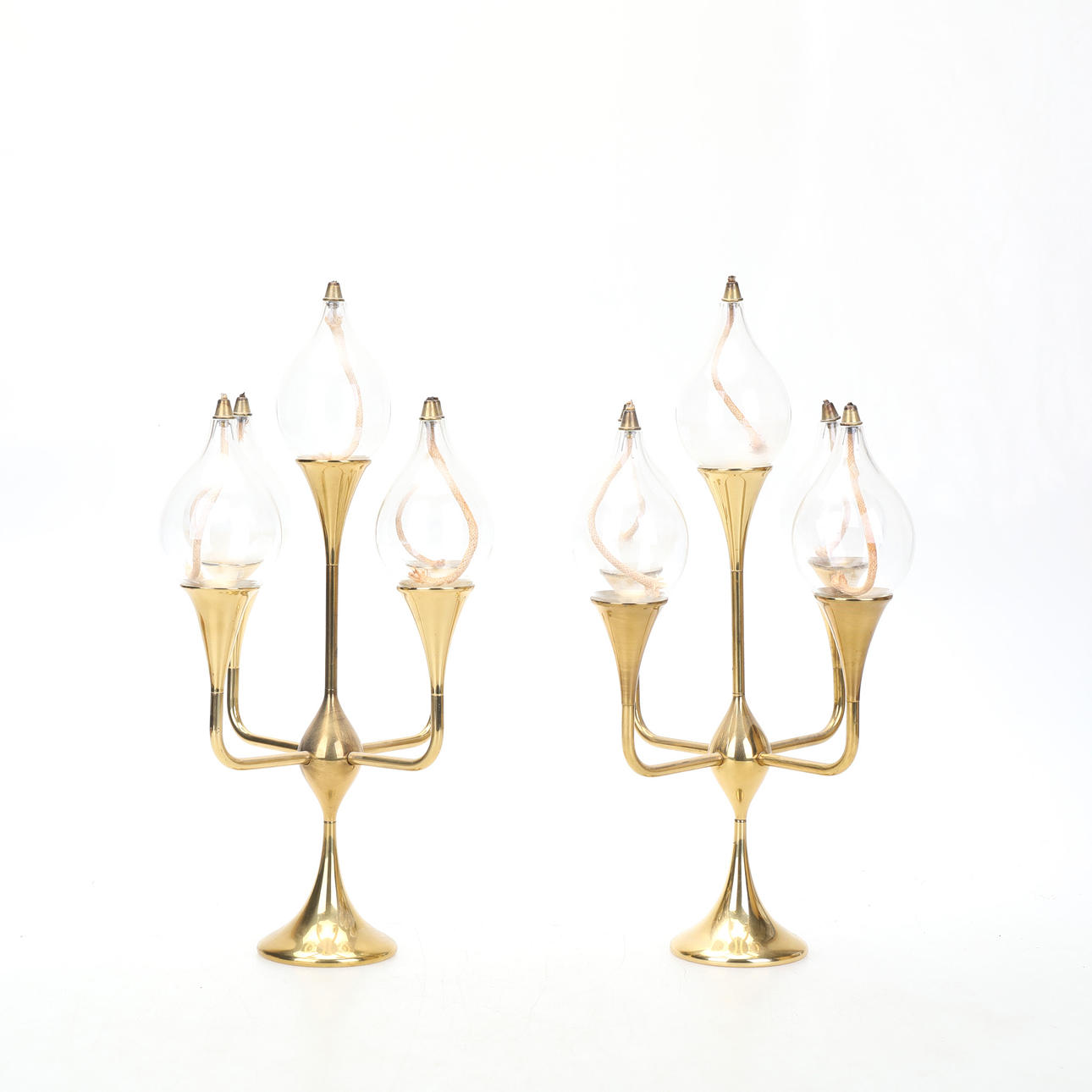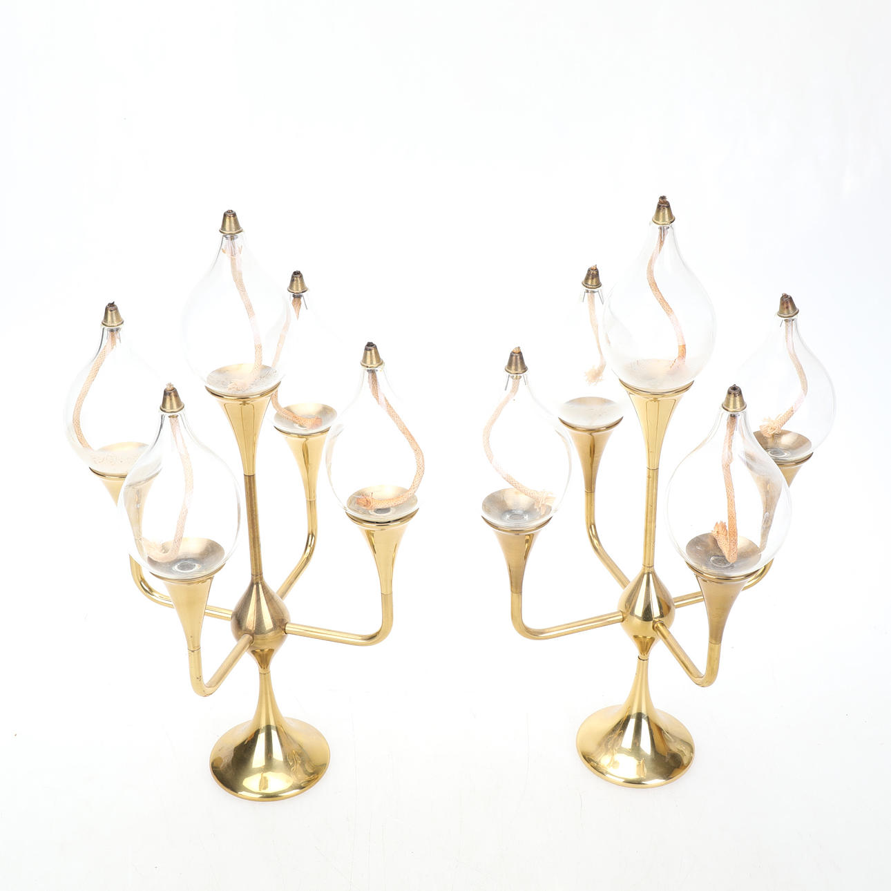 A pair of candelabra/oil lamps, with 5 flames/oil lamps each.