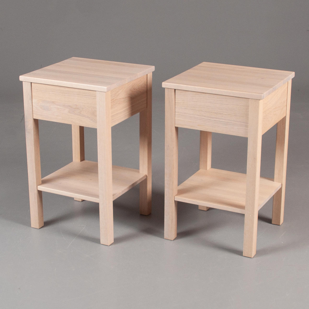 2791504. Jensen Plania bedside tables, a pair, white-stained oak.