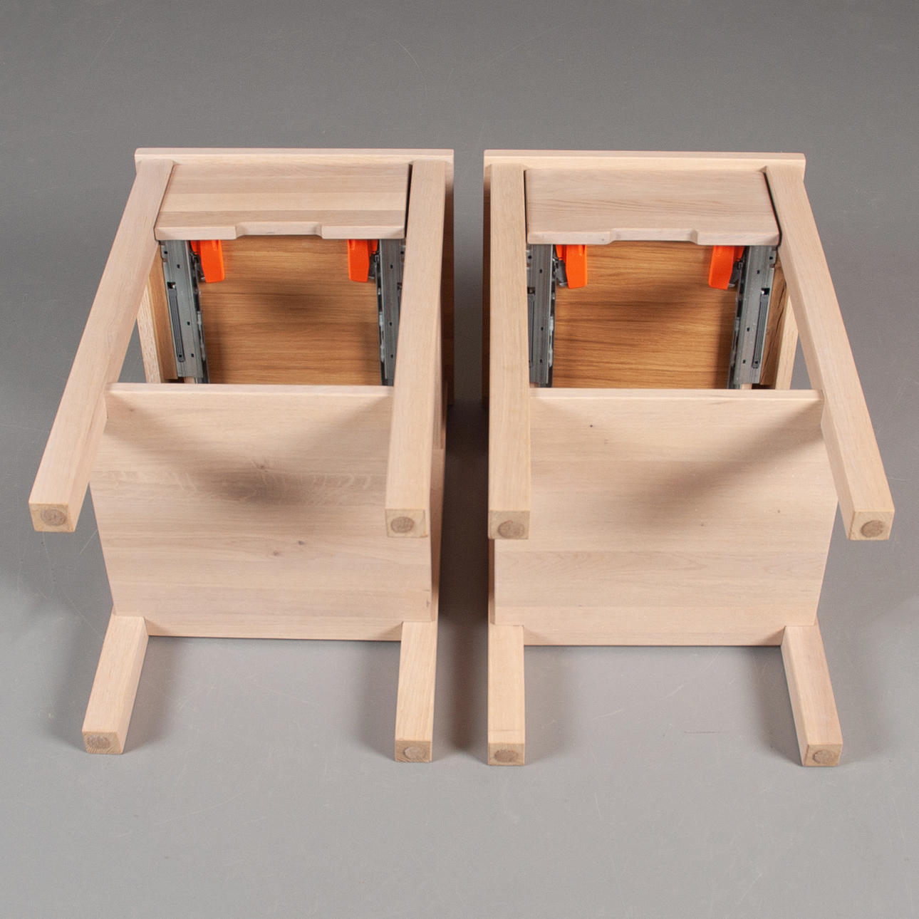 Jensen Plania bedside tables, a pair, white-stained oak.