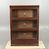 A three tier oak sectional bookcase by Globe Wernicke, each section with a makers plaque, 'Globe Wernicke Co Ltd, Office and Library Furnishers'. 125cms high, 86cms across.