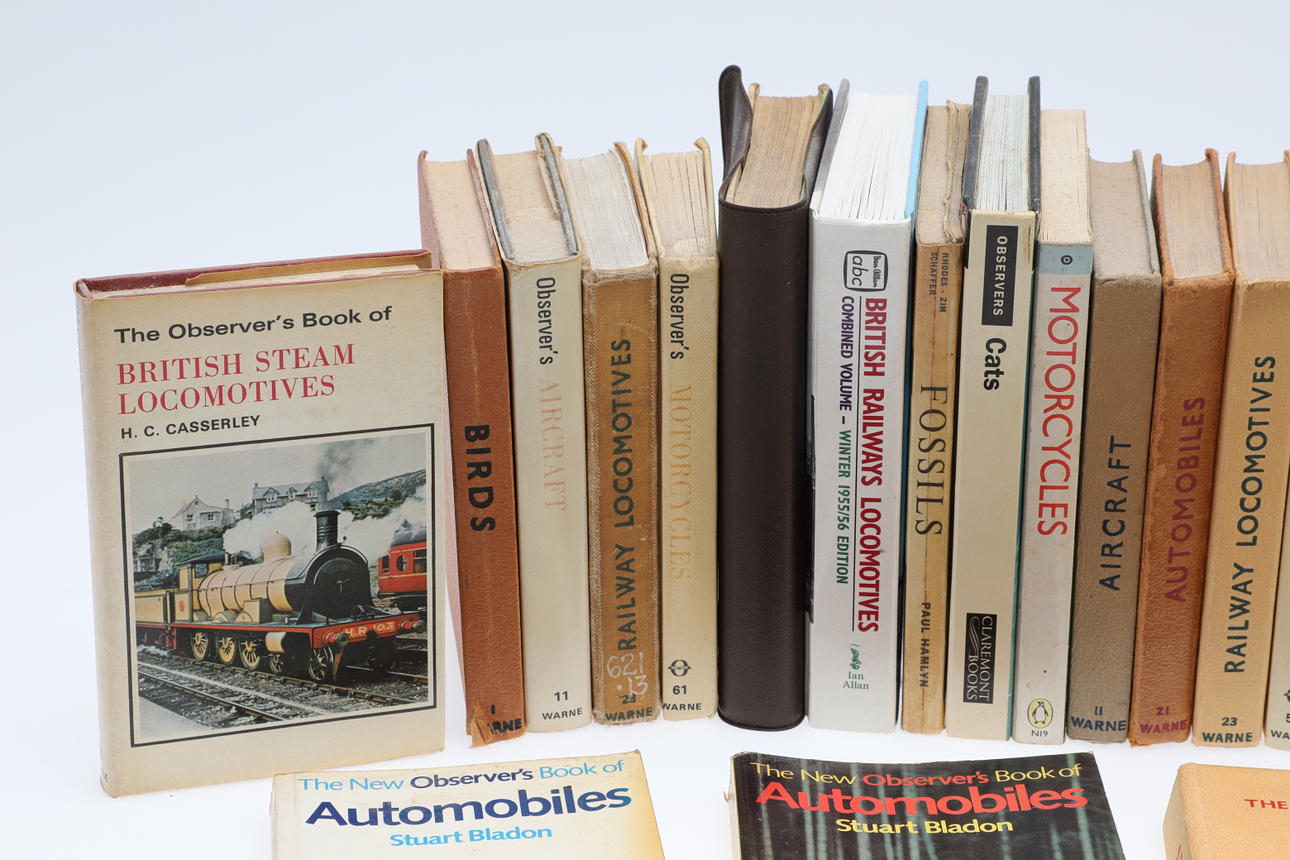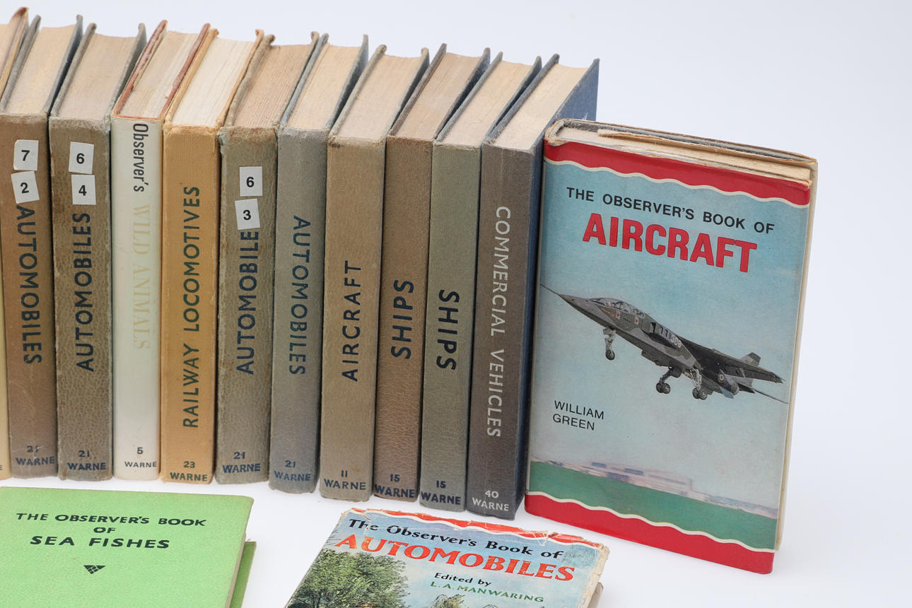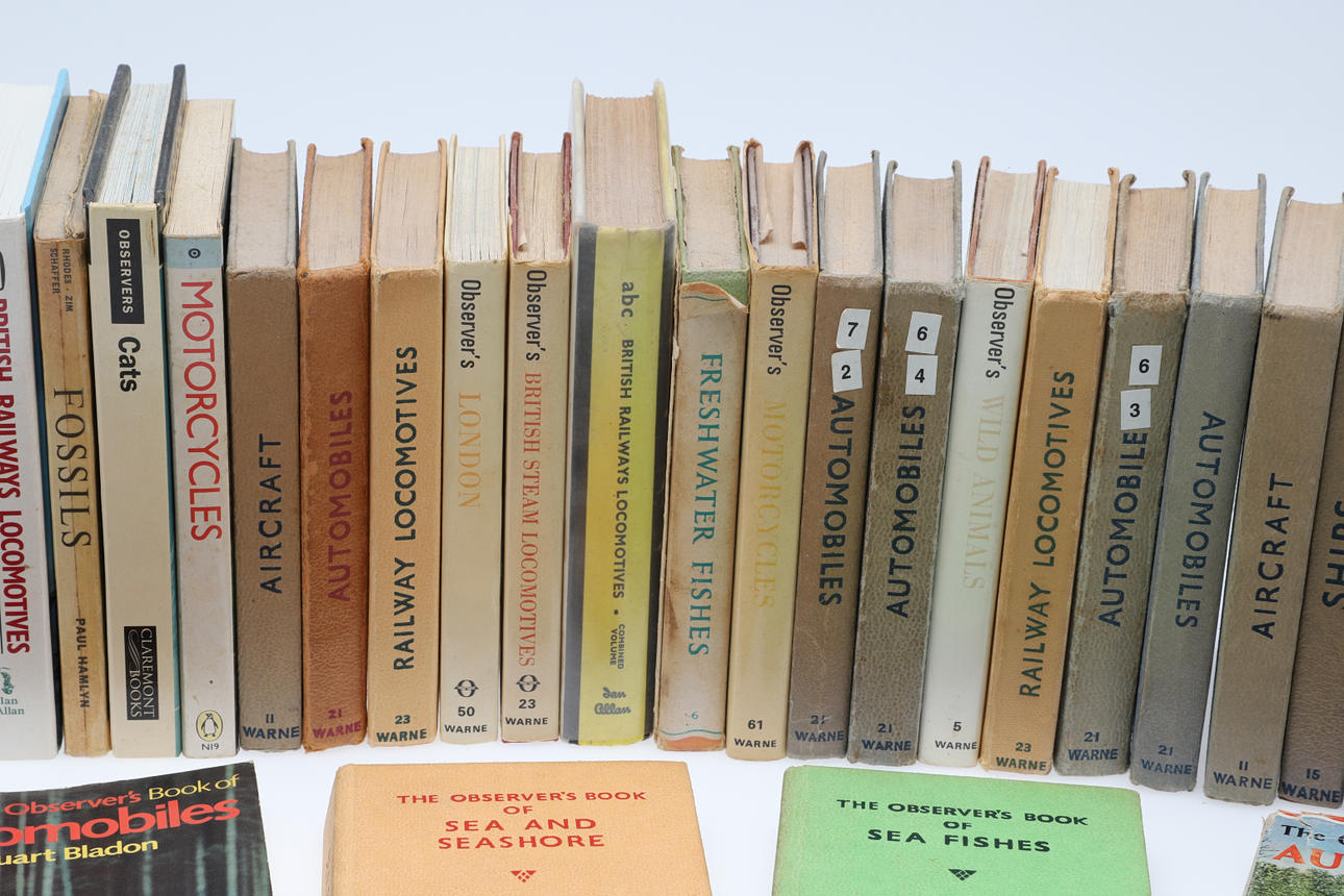 A variety of Observer Books, some with dust jackets and some without. Including Ships, Aircraft (various), Automobiles, British Steam Locomotives, Sea Fishes, Birds, Motorcycles etc. Also with three volumes of ABC British Railways Locomotives, and Fossils by Paul Hamlyn.