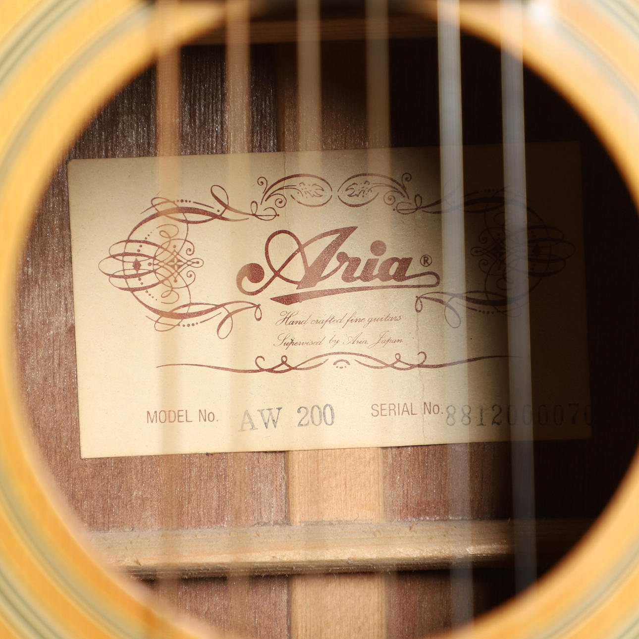 An Aria six string acoustic guitar, Model No AW 200, Serial Number 8812000070, made in Korea and with internal label (104cms high). Also with a TKL soft carrying case. (2).