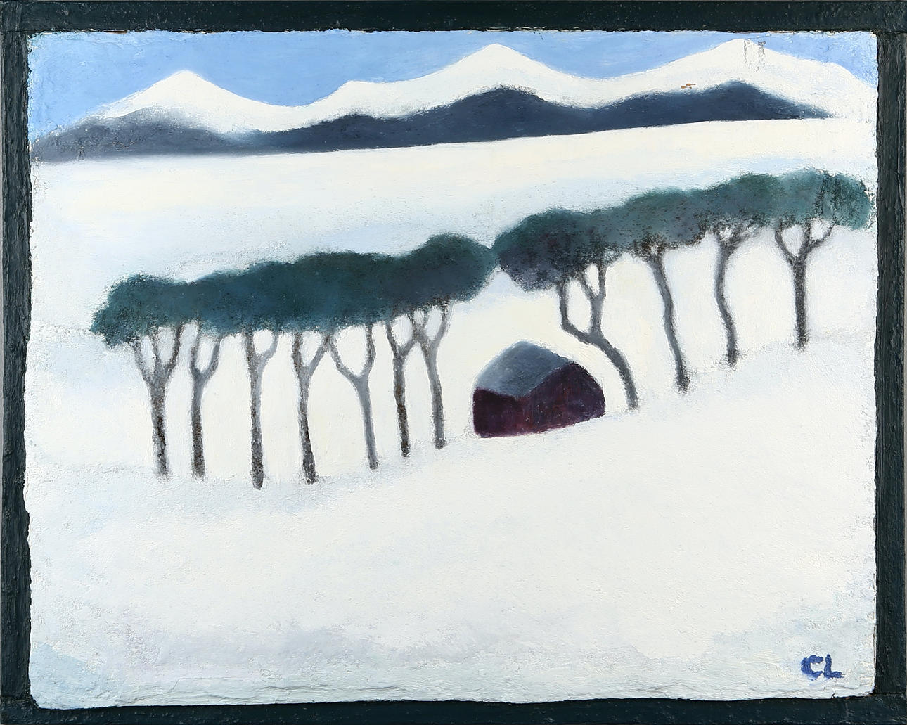 CECILIA LARSSON. Winter landscape, mixed media, monogram signed.
