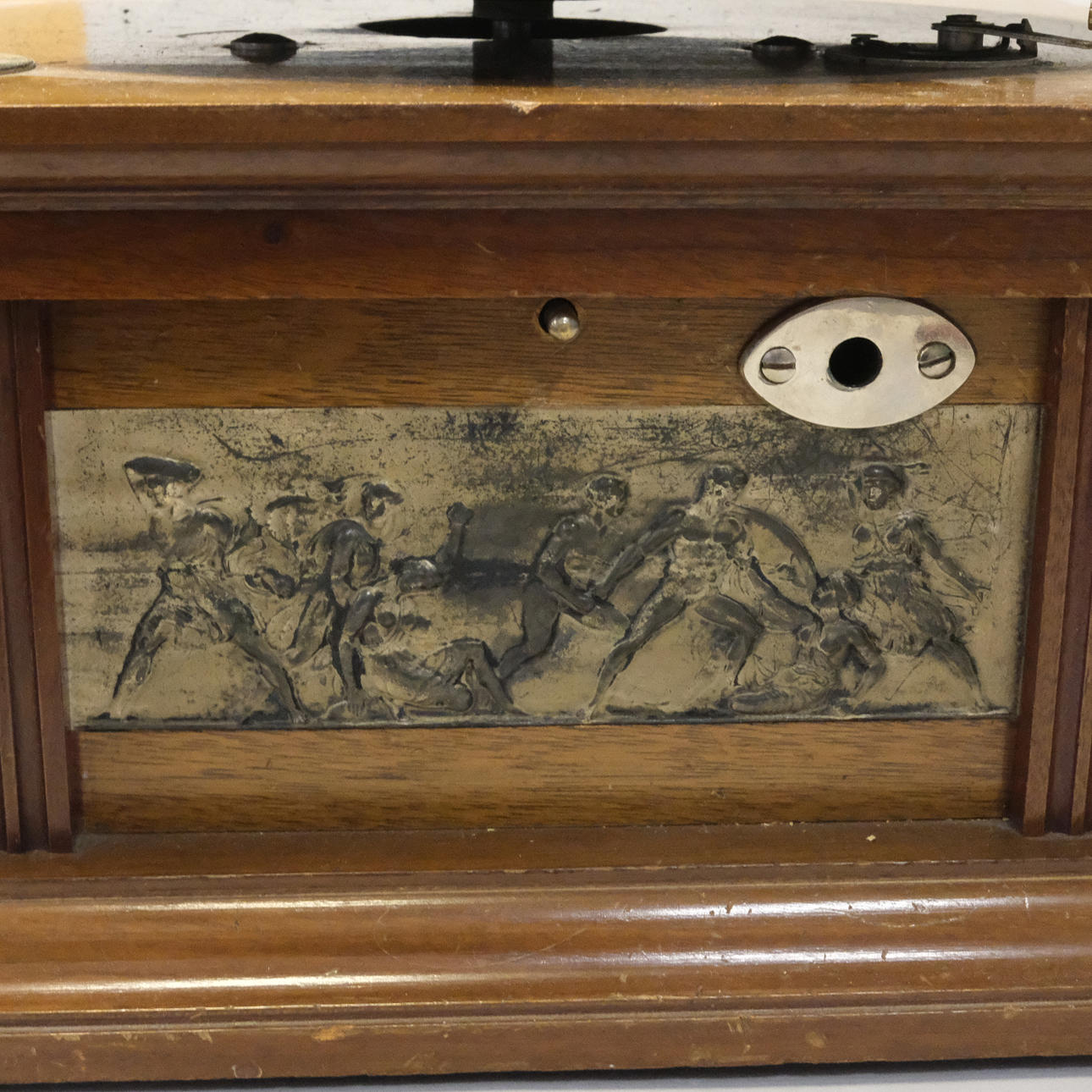 Relief decor with battle scenes in metal, dimensions 35x35cm, height 20cm.