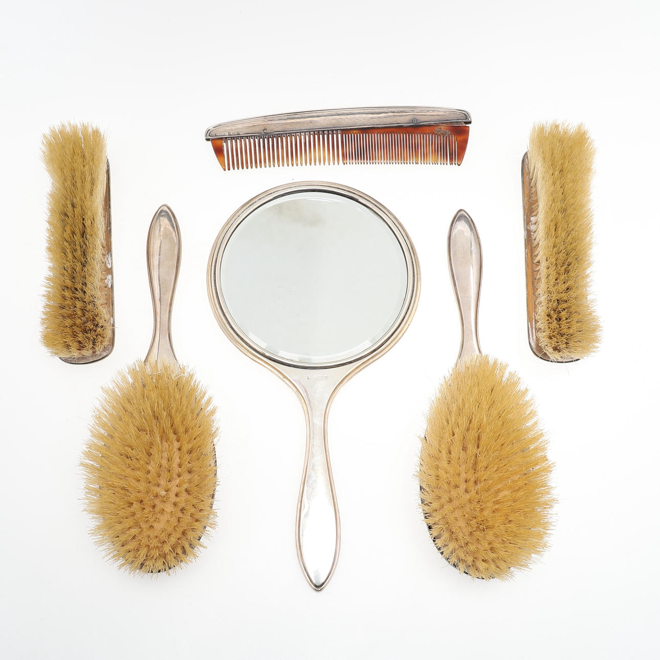2802812. A SILVER BACKED DRESSING TABLE SET.