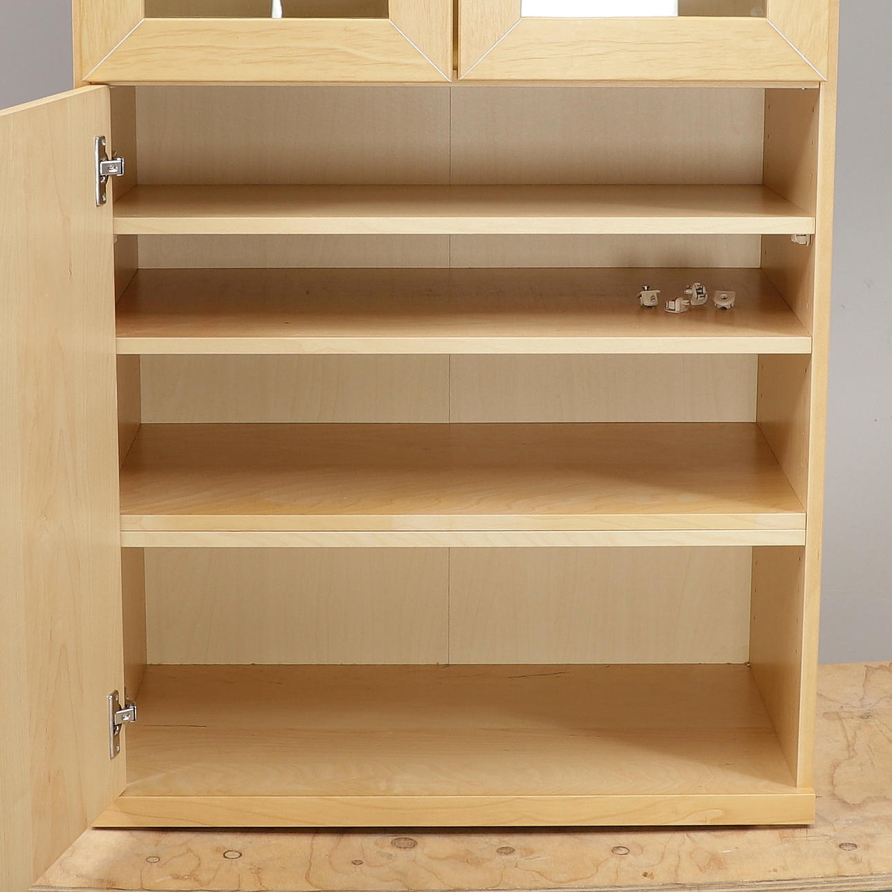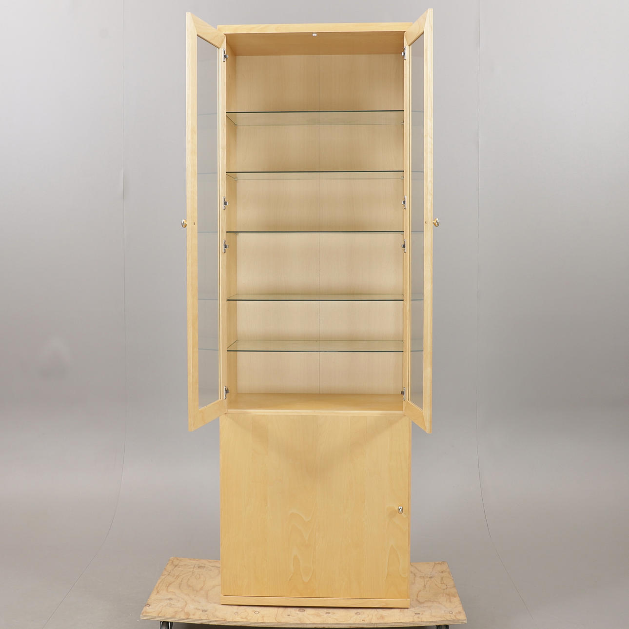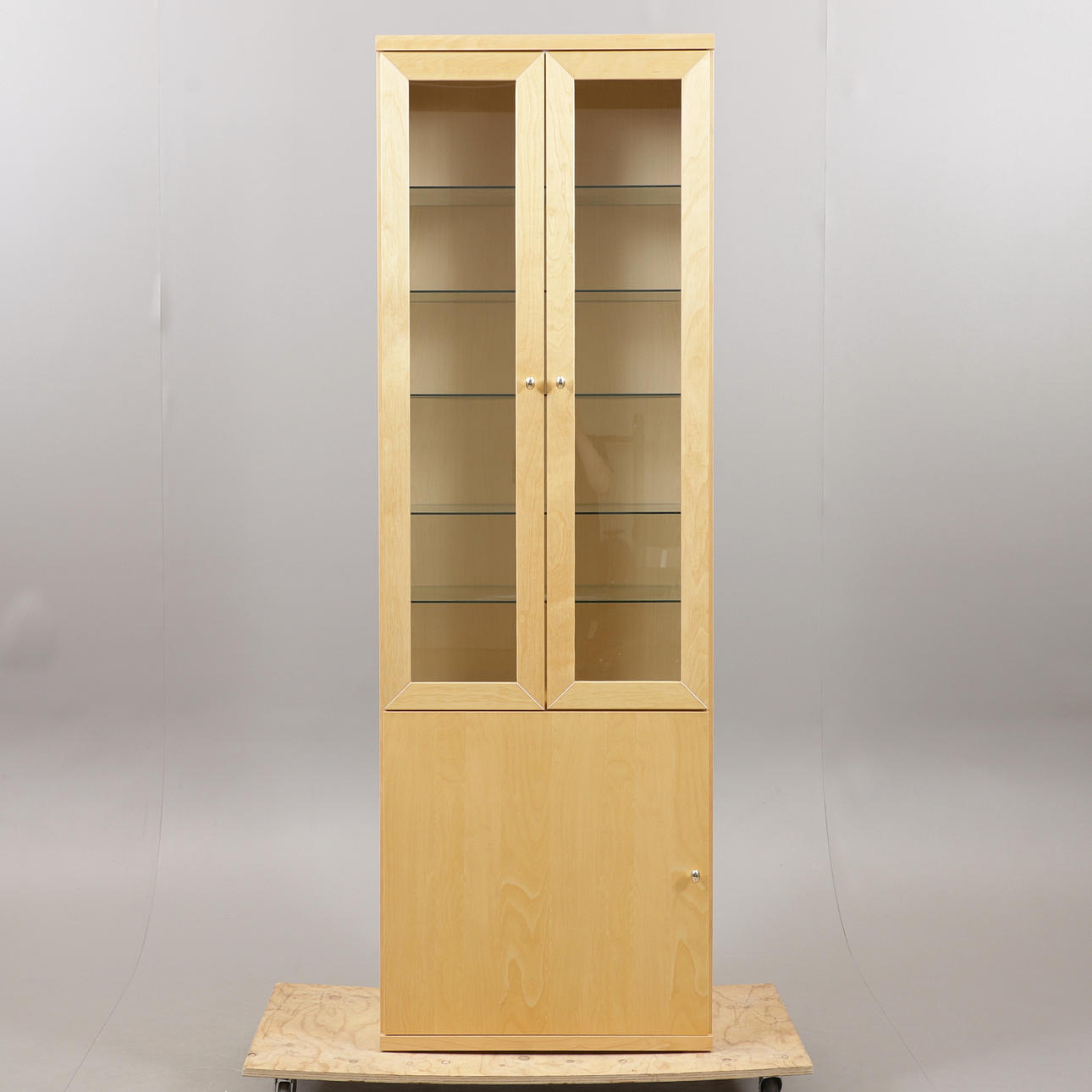 Height 219 cm, width 72 cm, depth 42 cm. 6 glass shelves.
