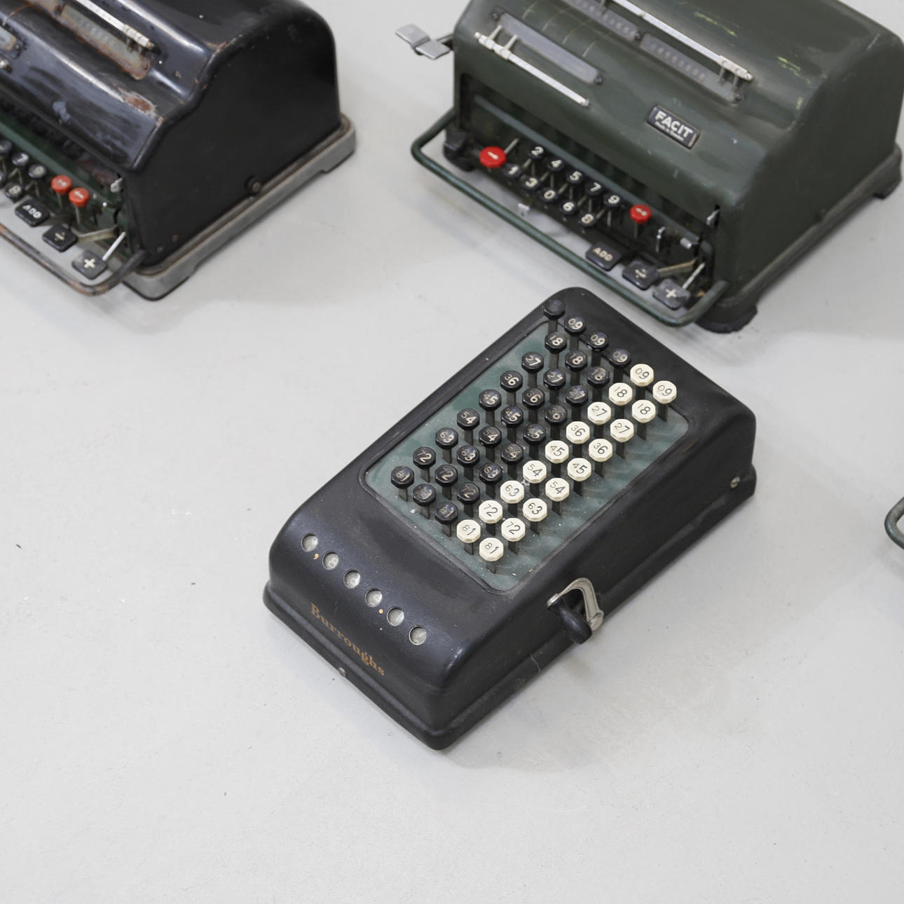 CALCULATORS, 5 pcs, Facit & Borroughs, mechanical and electronic, 20th century.