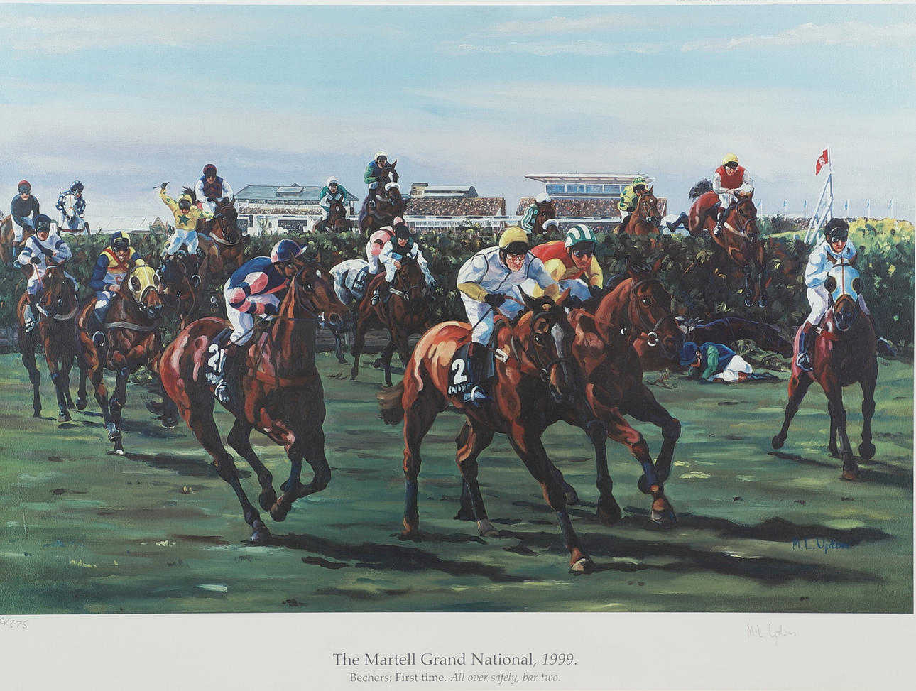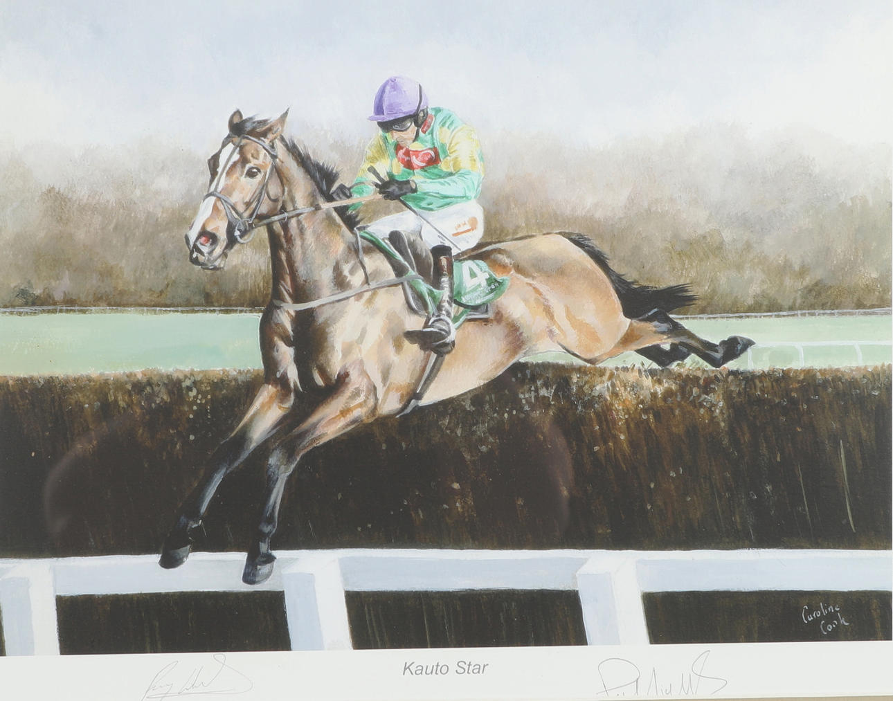 with three further prints of `Kauto Star` after Caroline Cook, signed by the artist, the owner Paul Nicholls and jockey Ruby Walsh, 30 x 41.5cm.; `The Martell Grand National 1999` after M L Upton, signed, 37 x 55.5cm.; and `Sky High Scandal` after Jonathan Walker, signed, 23.5 x 32cm. (5).
