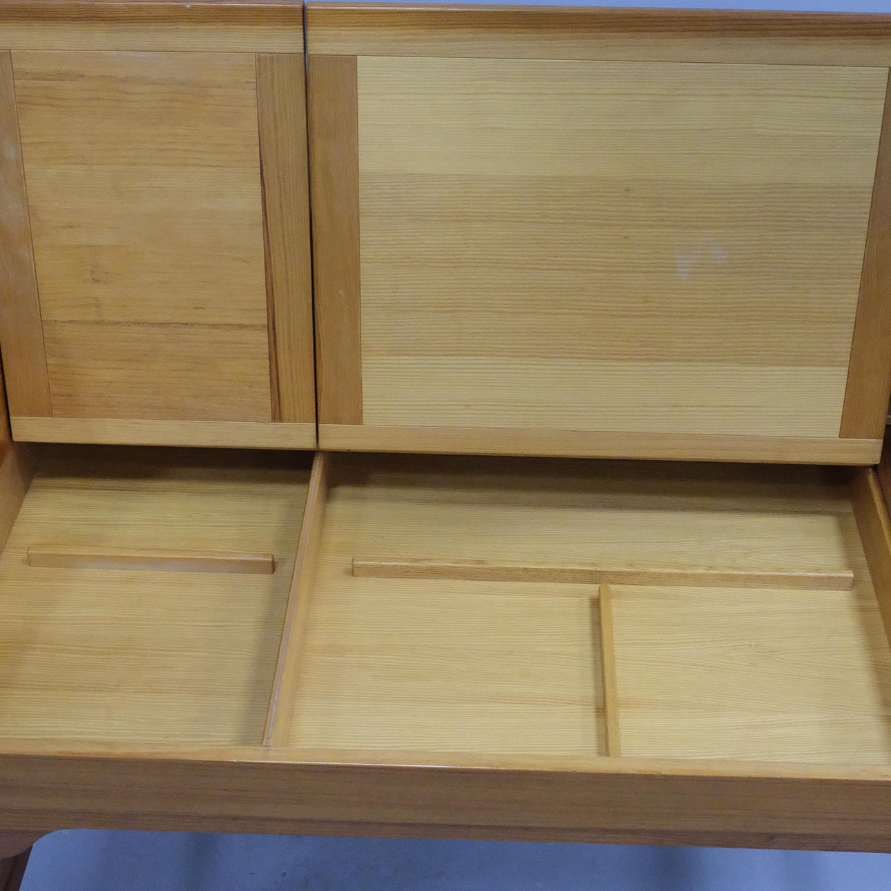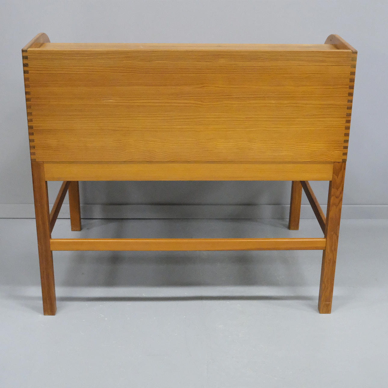 Fur with leather-covered top, maple compartment, 1970s/80s, height 103cm, length 112cm, depth 82cm. Reportedly purchased at Silverbergs in Malmö.