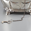 Dimensions 14 x 11 cm, height 13 cm, weight 382 g. Key included.