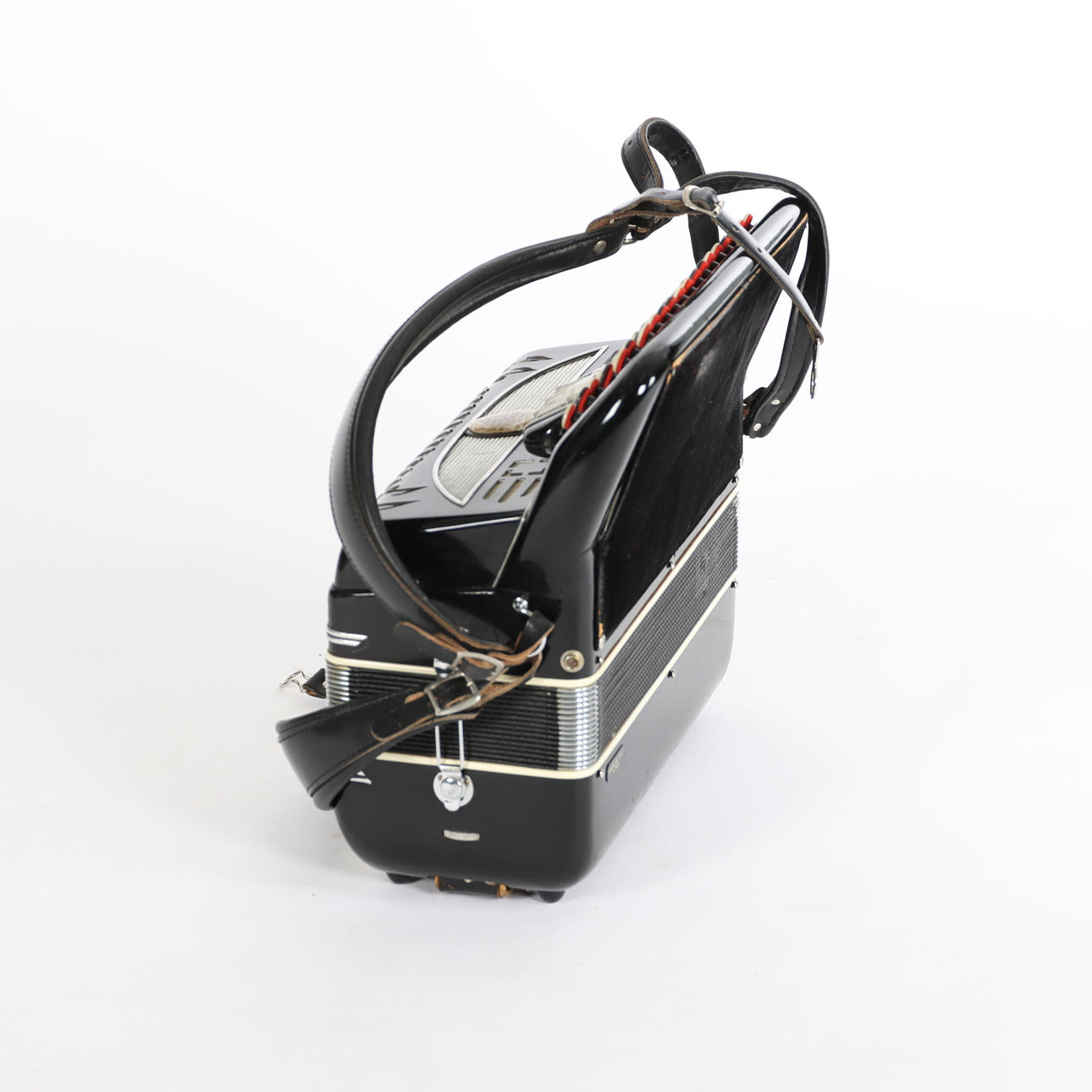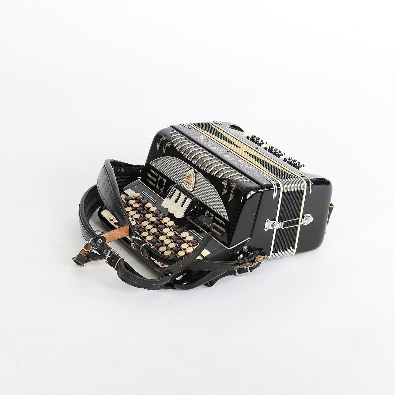 Accordion Curtini Minor, 2-choir. In accordion case, inside covered in red textile.