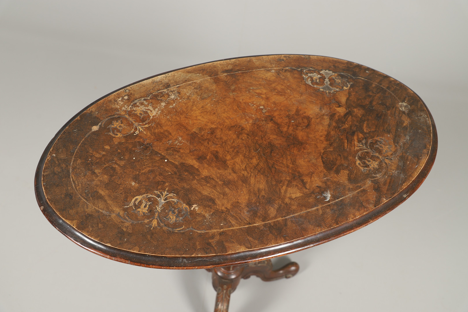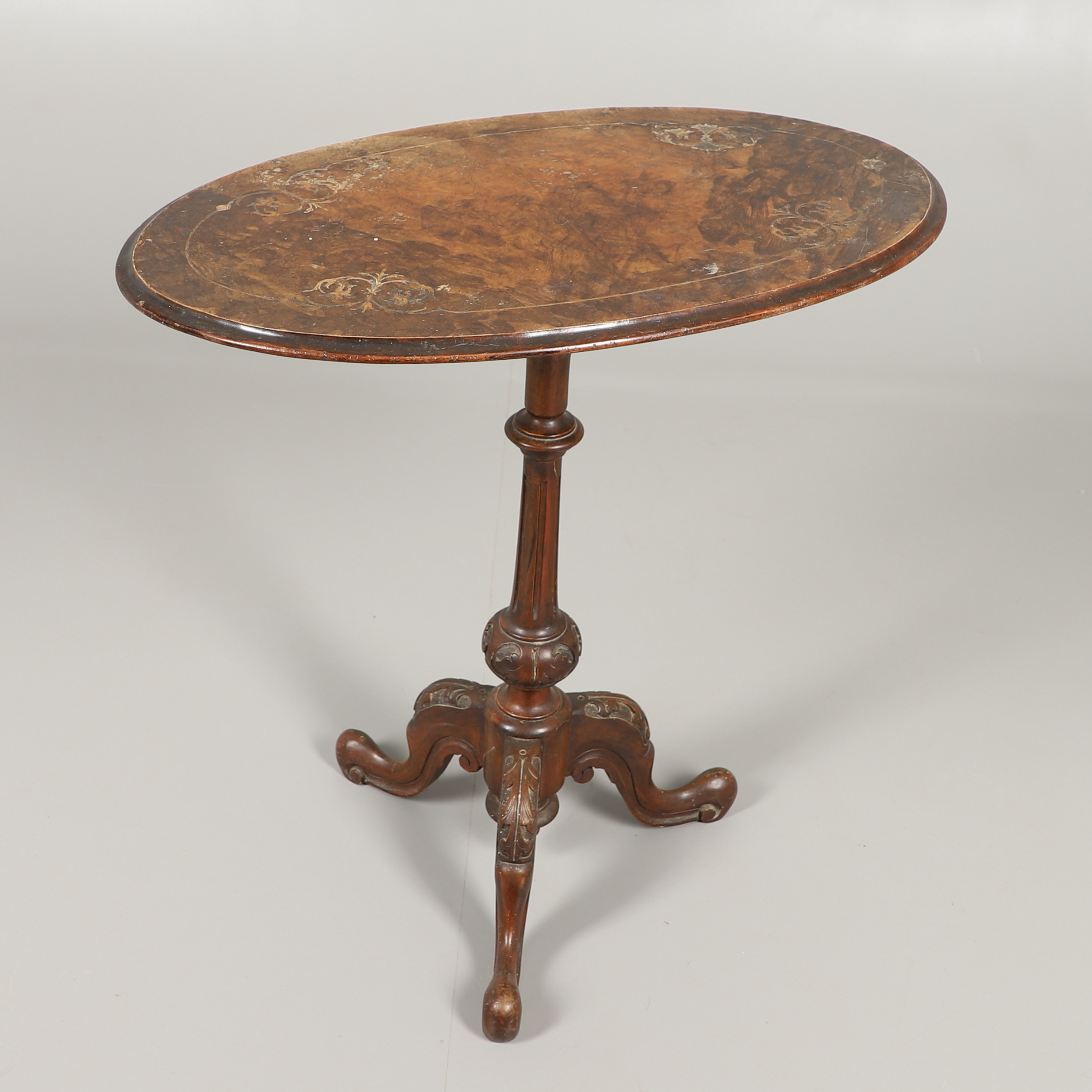 2816518. AN INLAID WALNUT TRIPOD TABLE.