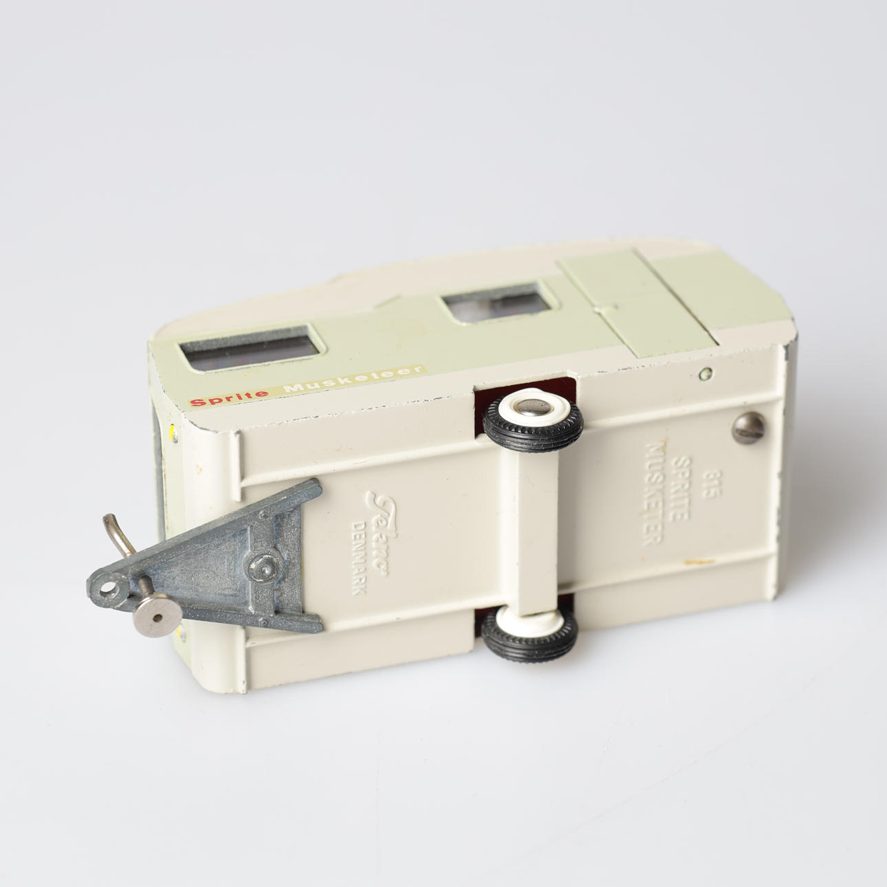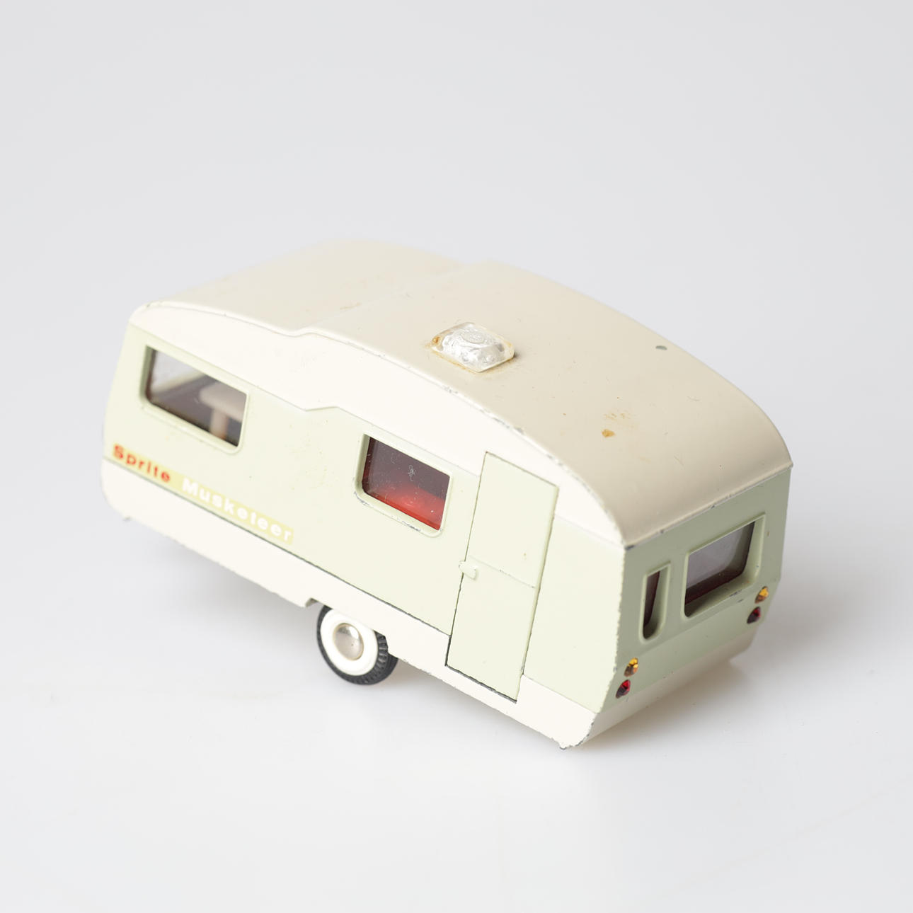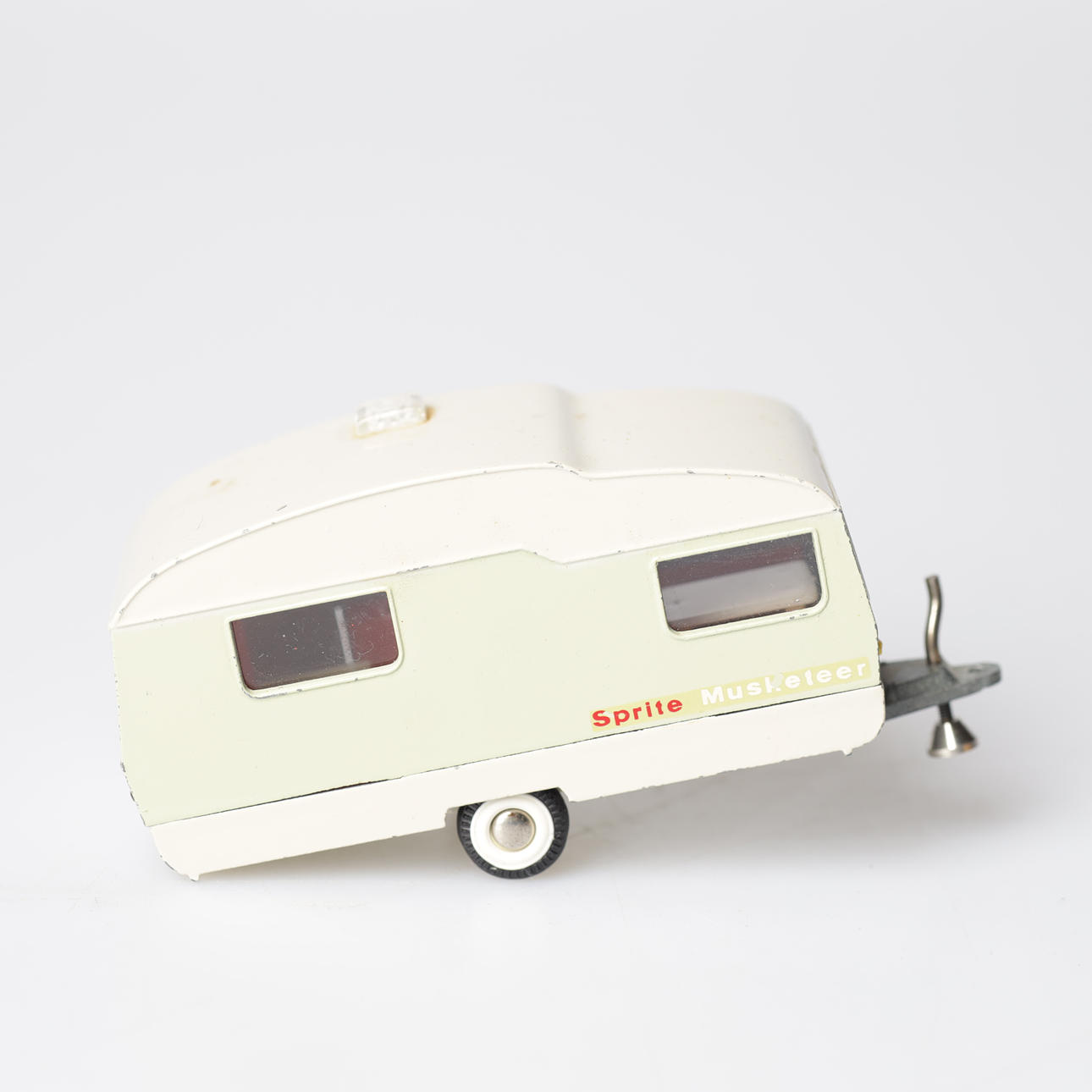 Tank truck, Shell, "Volvo", length approx. 22 cm. Caravan, "Sprite Musketeer", length approx. 11 cm.