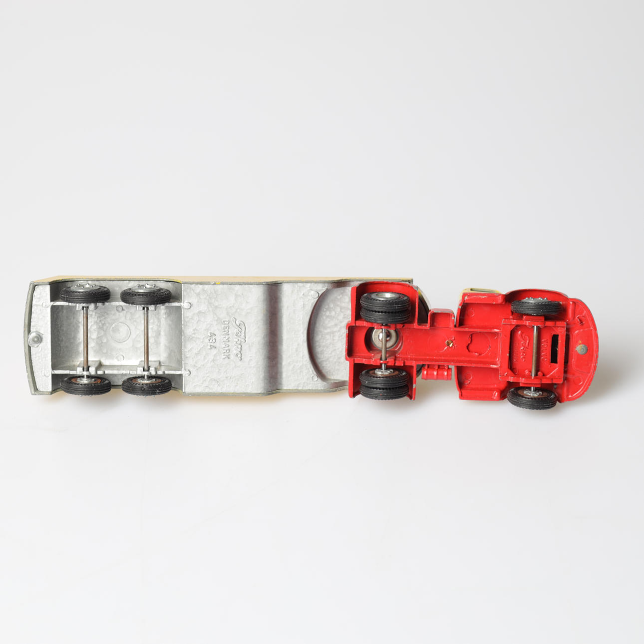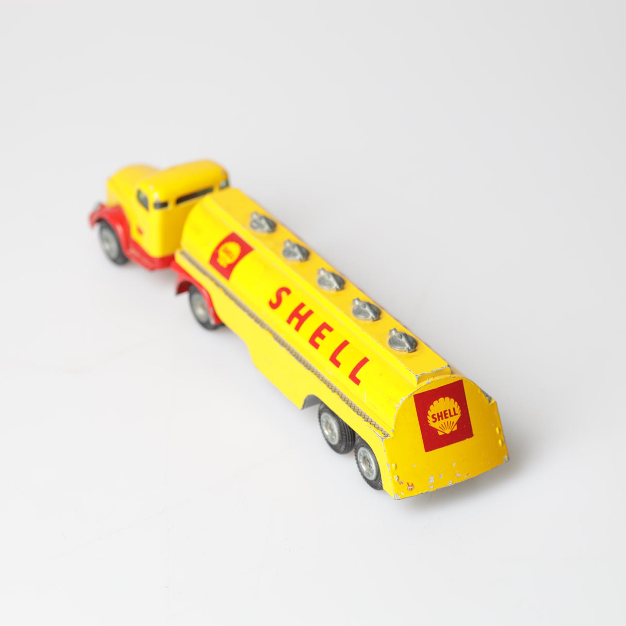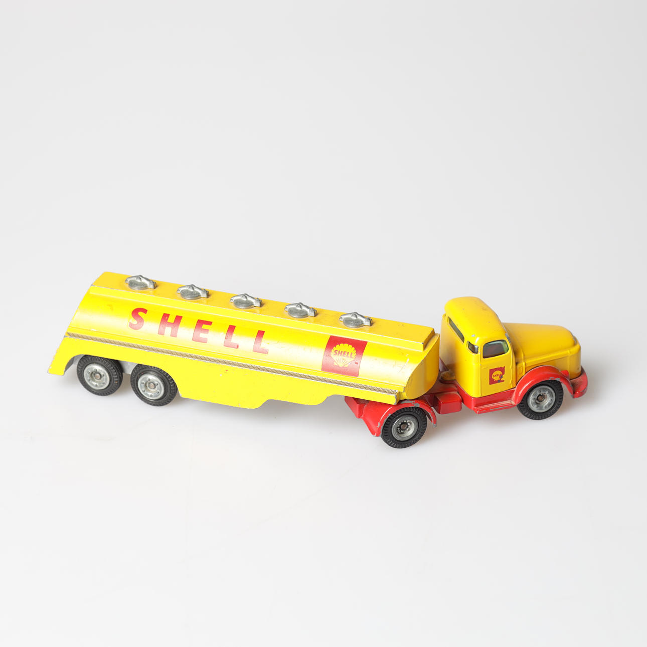 Tank truck, Shell, "Volvo", length approx. 22 cm. Caravan, "Sprite Musketeer", length approx. 11 cm.