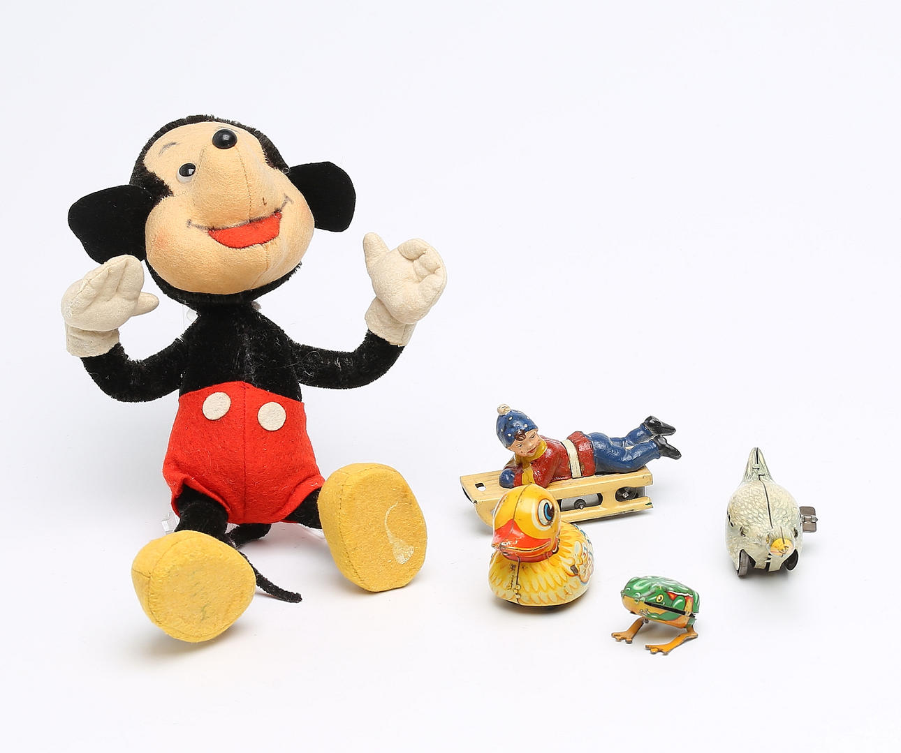 2820062. TOYS various tin, clockwork and plastic, Mickey Mouse doll.
