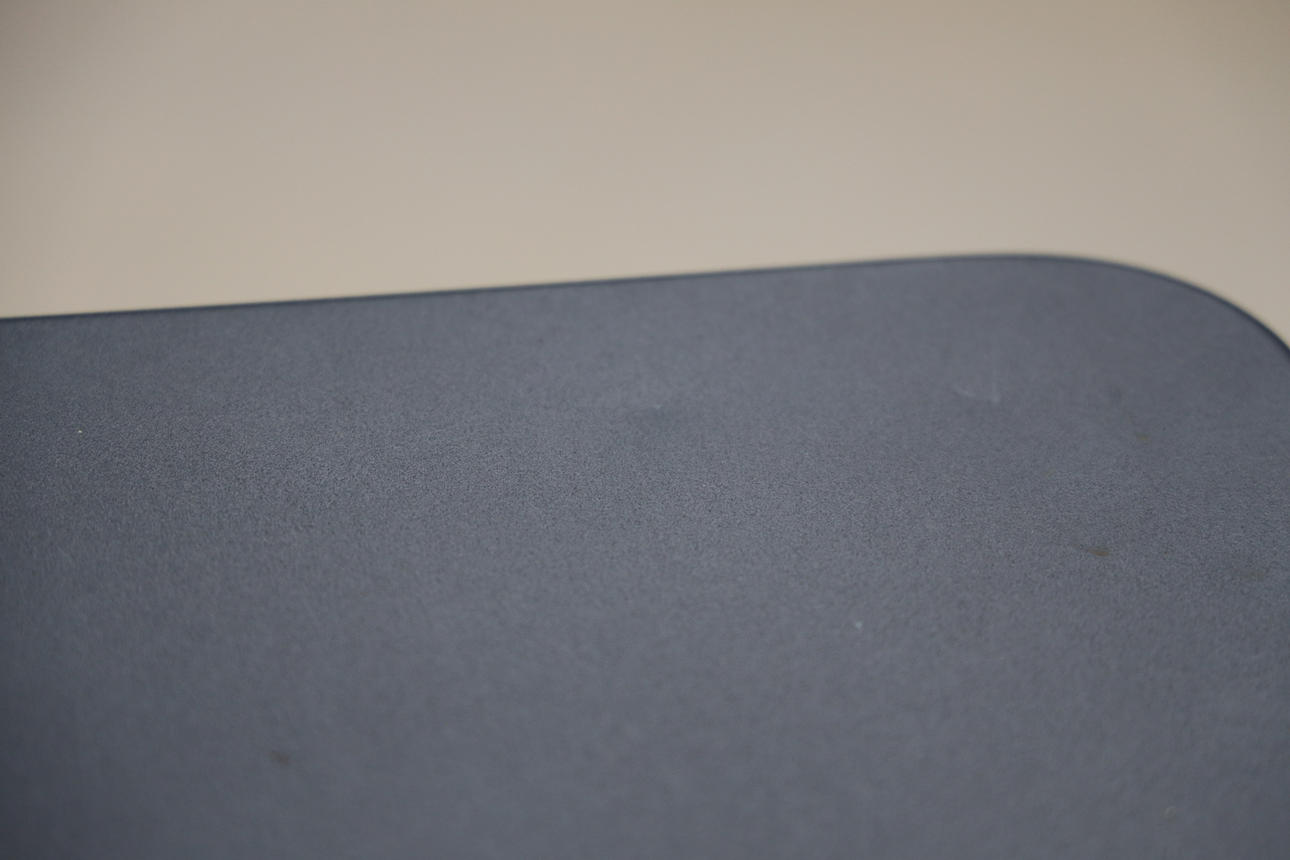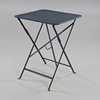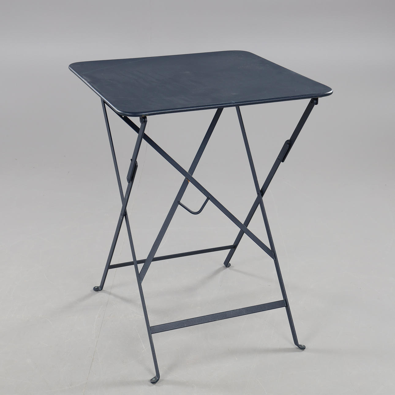 Lacquered metal. The board measures 57x57, height 75 cm.