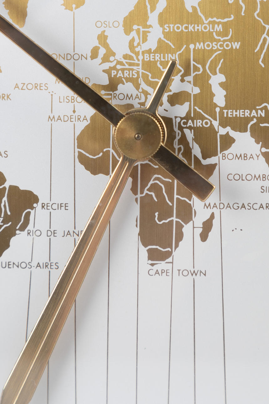World clock / table clock by Kienzle. Dial with world map and world time. Brass body. Instructions for use available.