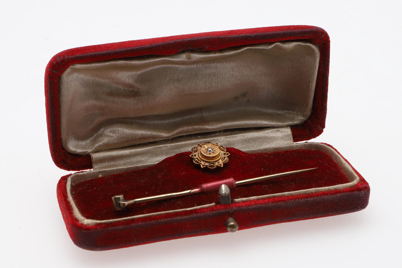 A DIAMOND AND GOLD STUD/STICK PIN.