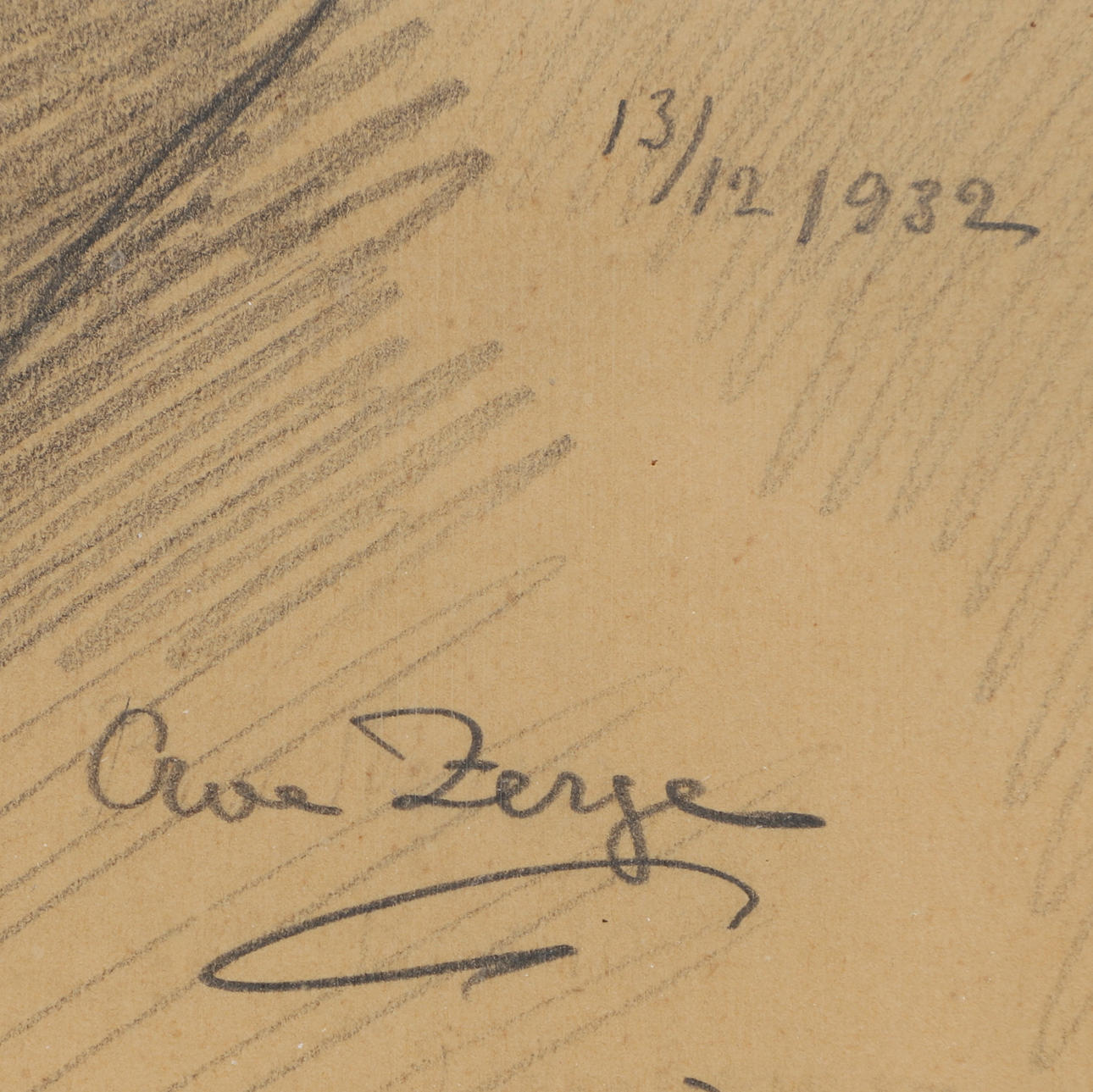 OWE  ZERGE. drawing, portrait of Bror Persson, signed, dated 1932.