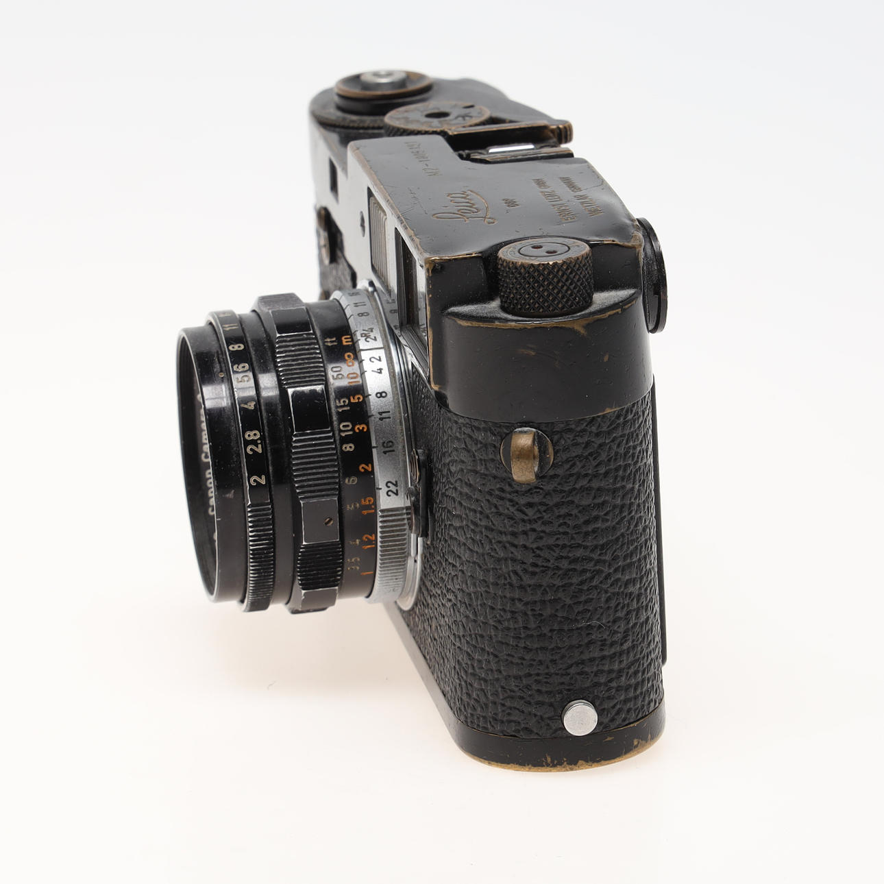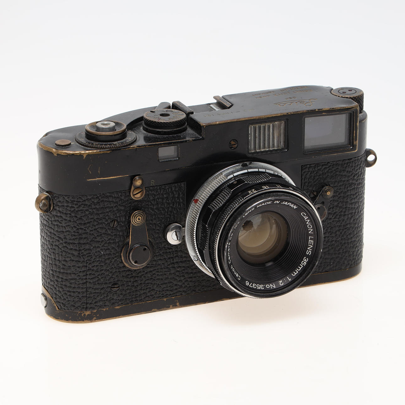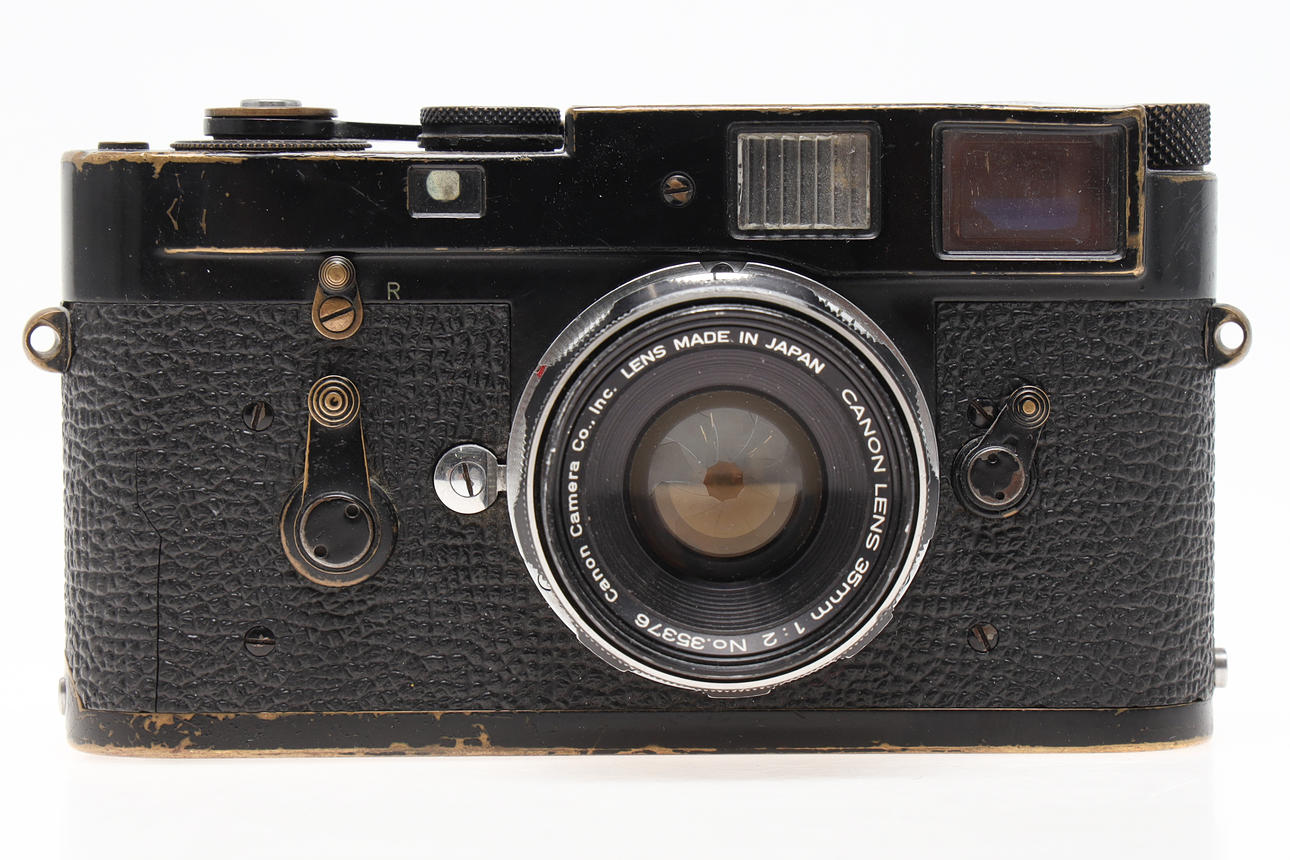 Black camera body. Lens Canon 35mm 1:2.